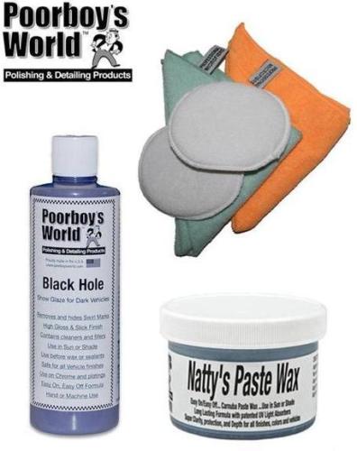 -Zakupiłem produkty do czyszczenia. Glinkę Bilt Hamber Soft, Poorboys Black Hole Show Glaze do kolorów ciemnych i Natty's Paste Wax Blue do zabezpieczenia + aplikatory.