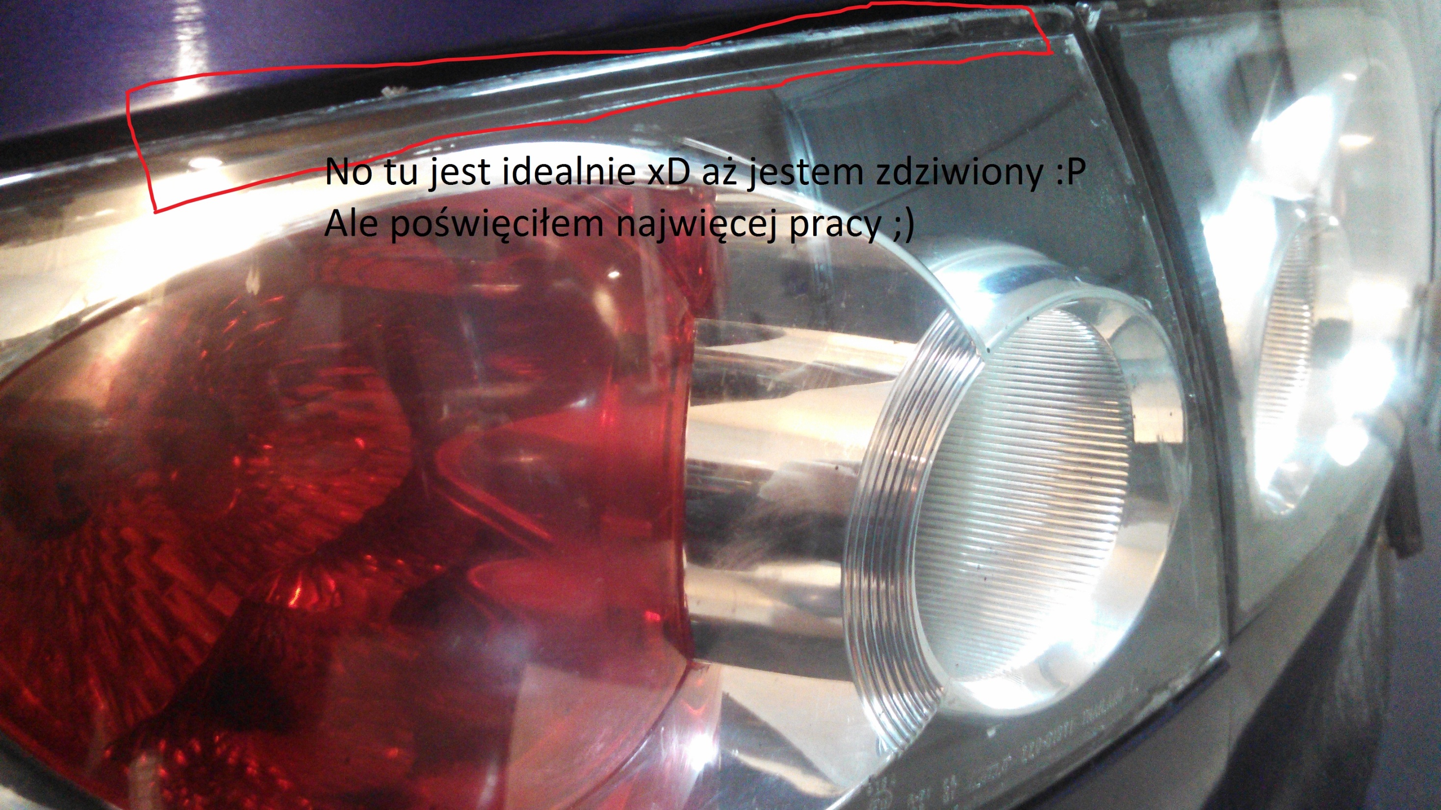 Widać również doskonałości jak i niedoskonałości szlifowania, wiadomo, wszystko do poprawki jak tylko będzie czas, narazie jeżdżę tak bo mi się podoba i z odległości 2metrów widać piękno świateł a nie rzucają się w oczy małe niedoskonałości