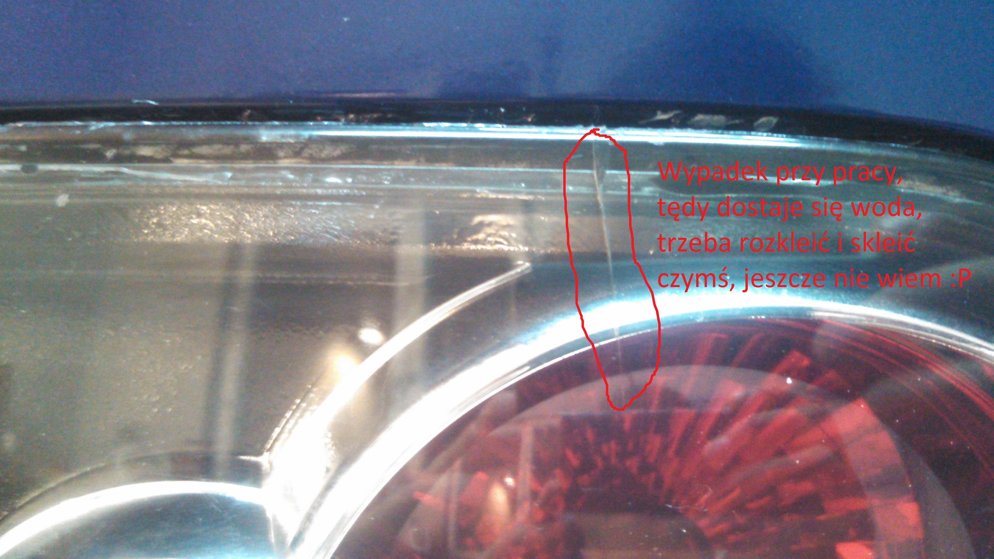 Jak widać mam 2 lampy zaparowane, jedna jest pęknięta i dostaje się powietrze, druga to błotnikowa, nie wiem jakim cudem ale gdzieś musiała być szczelinka i dostaje się coś z zewnątrz