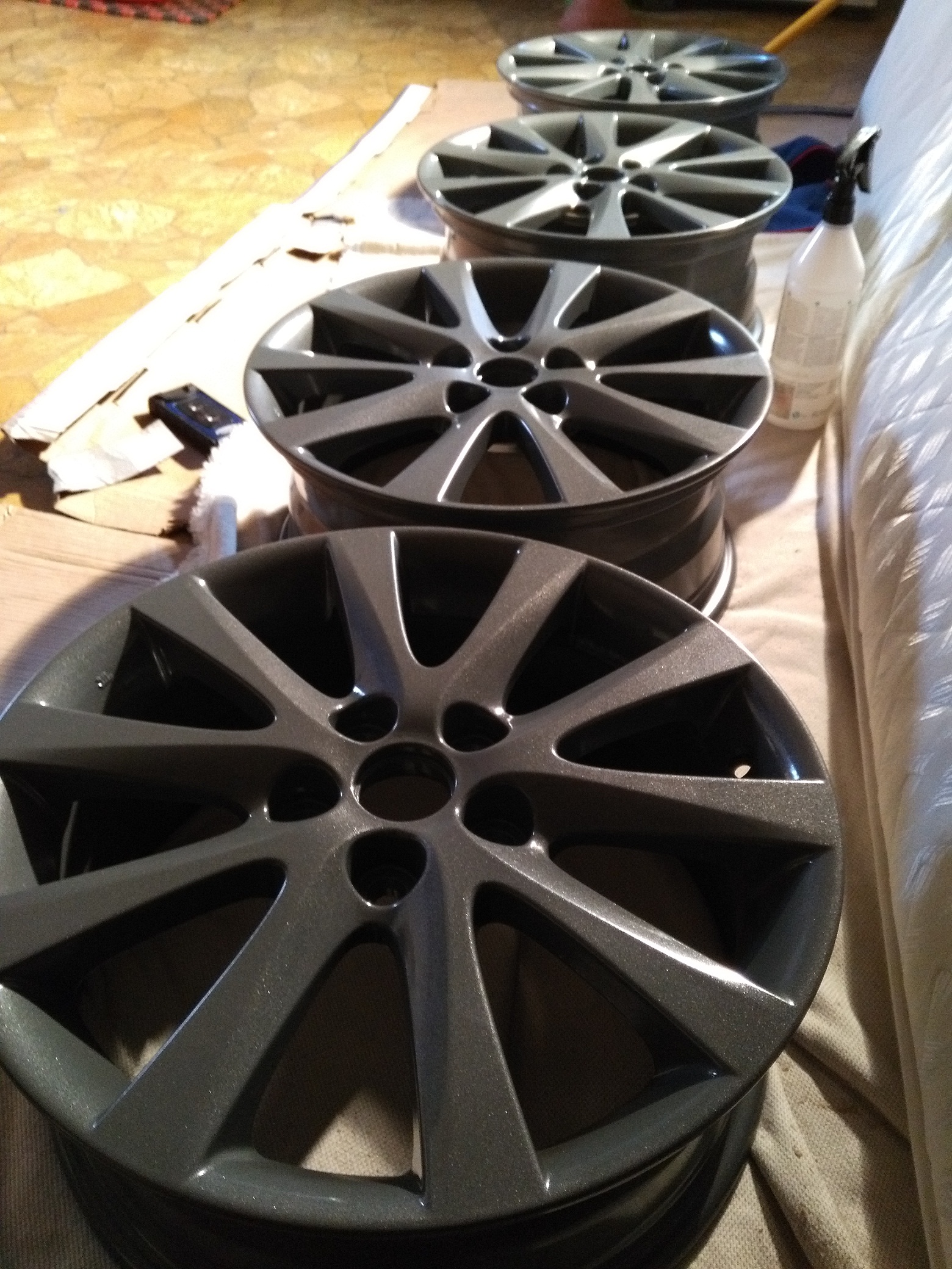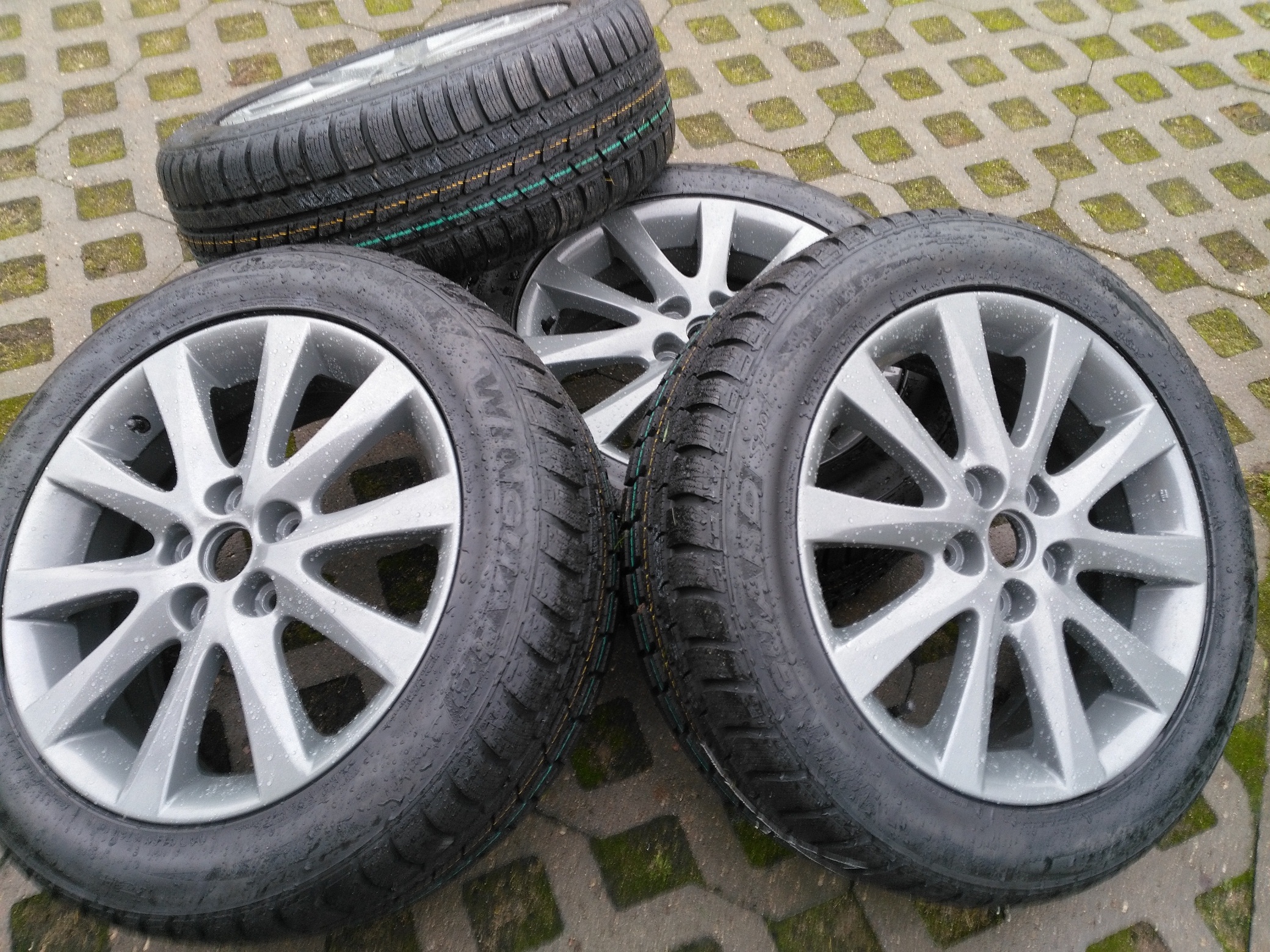 I przyszedł też czas na koła zimowe. Alu pomalowane i zabezpieczone ceramiką. Niestety przez pomyłkę kupiłem opony 215/55 zamiast 215/50 i obciera mi przy obciążeniu o plastikowe nadkole