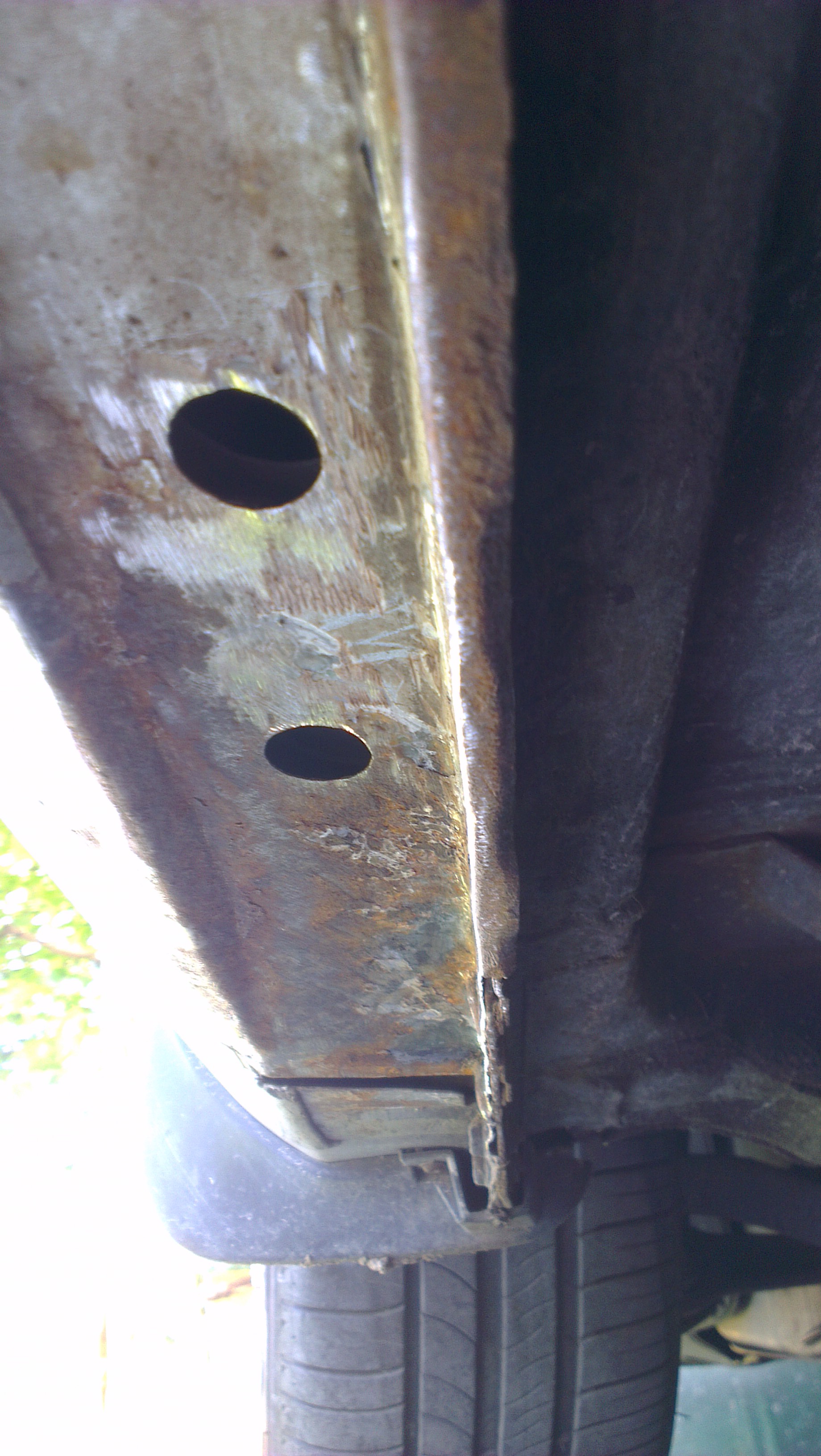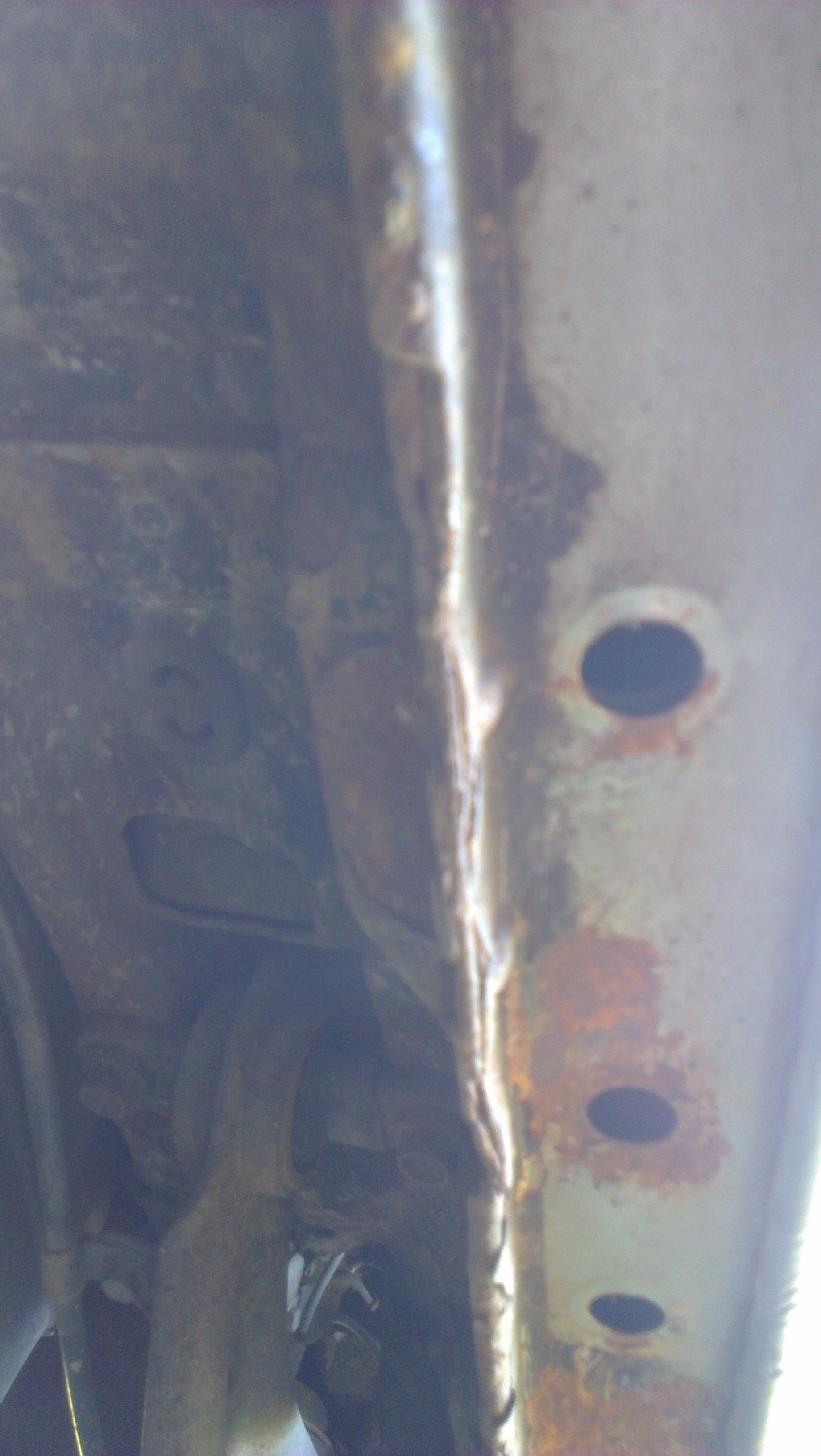 ...co ciekawe ruda była nawet pod tym silikonowym paskiem ochronnym, który idzie wzdłuż całego progu – z zewnątrz wszystko ładnie farba zasłaniała,a pod spodem...rudo