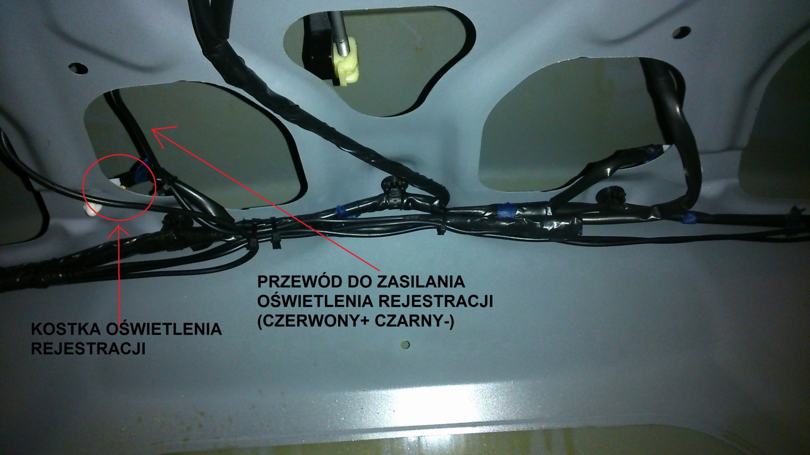 Gdy już to zrobimy przechodzimy do podłączenia oświetlenia tablicy rejestracyjnej. W kostkę (rys.4)wpinamy odpowiednio przewody, po czym ładnie izolujemy.
