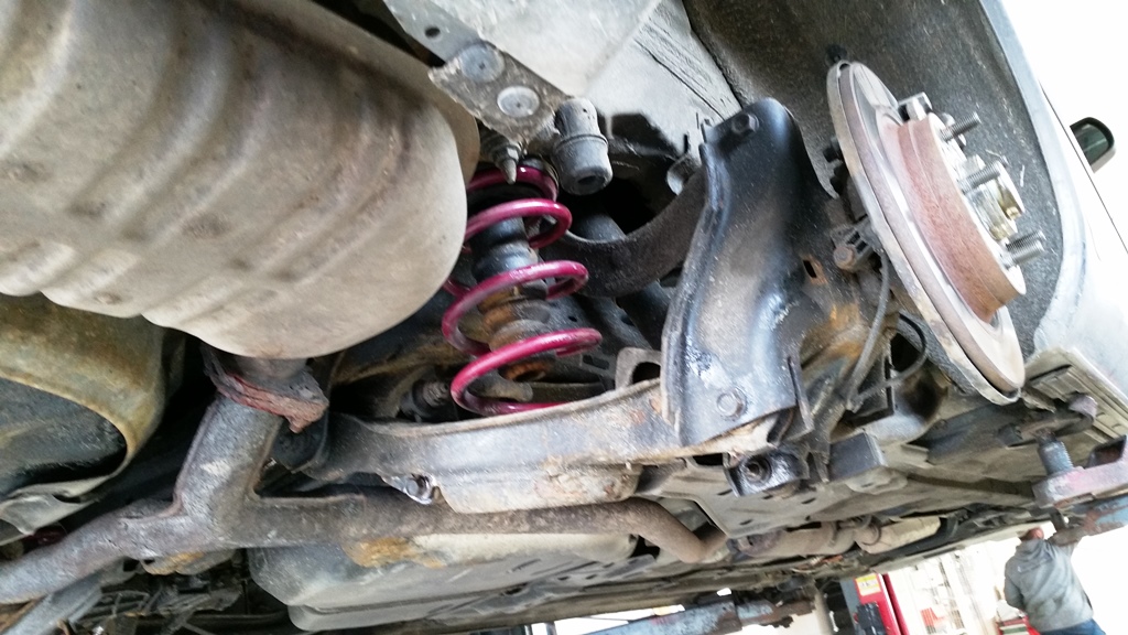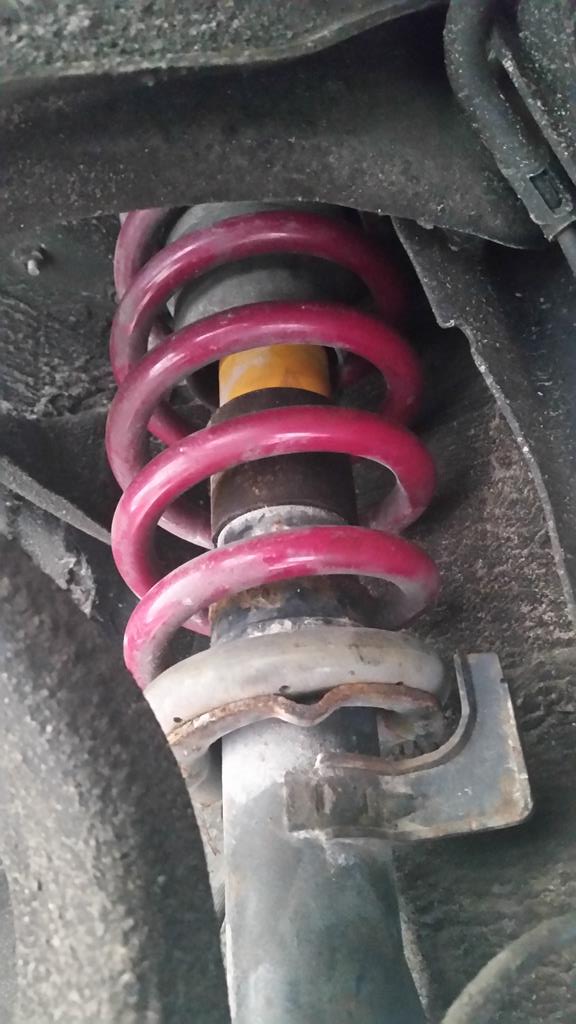 Dziś miałem dzień wolny... No i wpadły sprężyny Vogtland z przodu z amortyzatorami o krótszym skoku tej samej firmy. Auto siadło 4 cm z przodu i 3 cm z tyłu ale jeszcze pewnie przód się obniży.