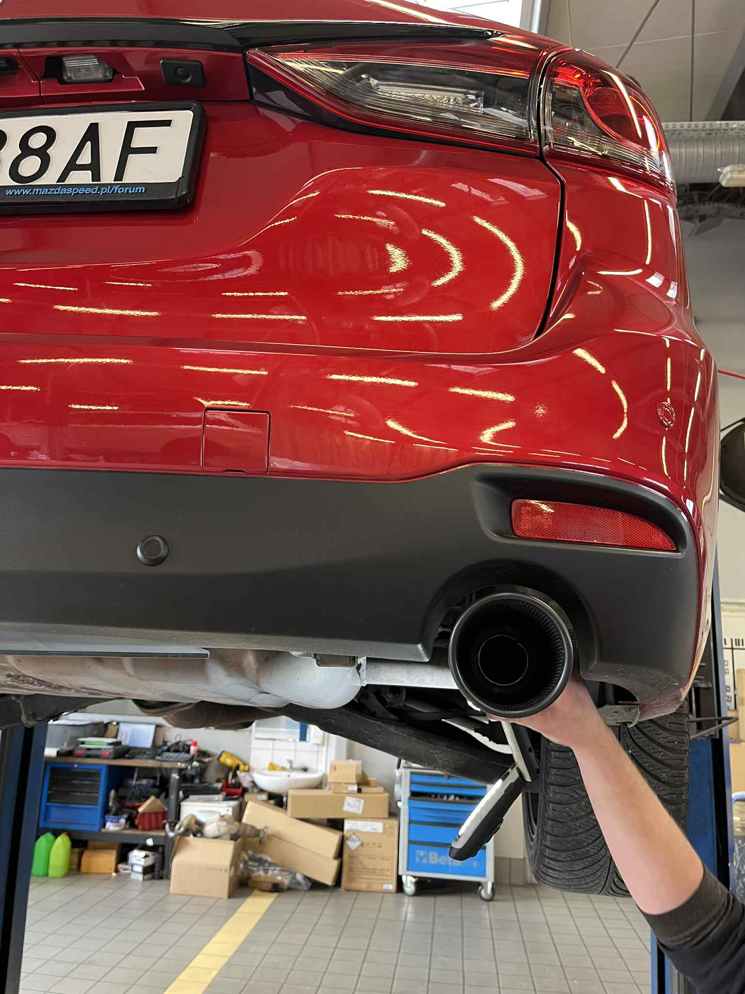 – korekta dwuetapowa lakieru, uzupełnienie zaprawką kilku dziar i ubytków i zamknięcie powłoką grafen, folia ppf na reflektory, lusterka oraz pod klamki, "niewidzialna" wycieraczka na przód;
