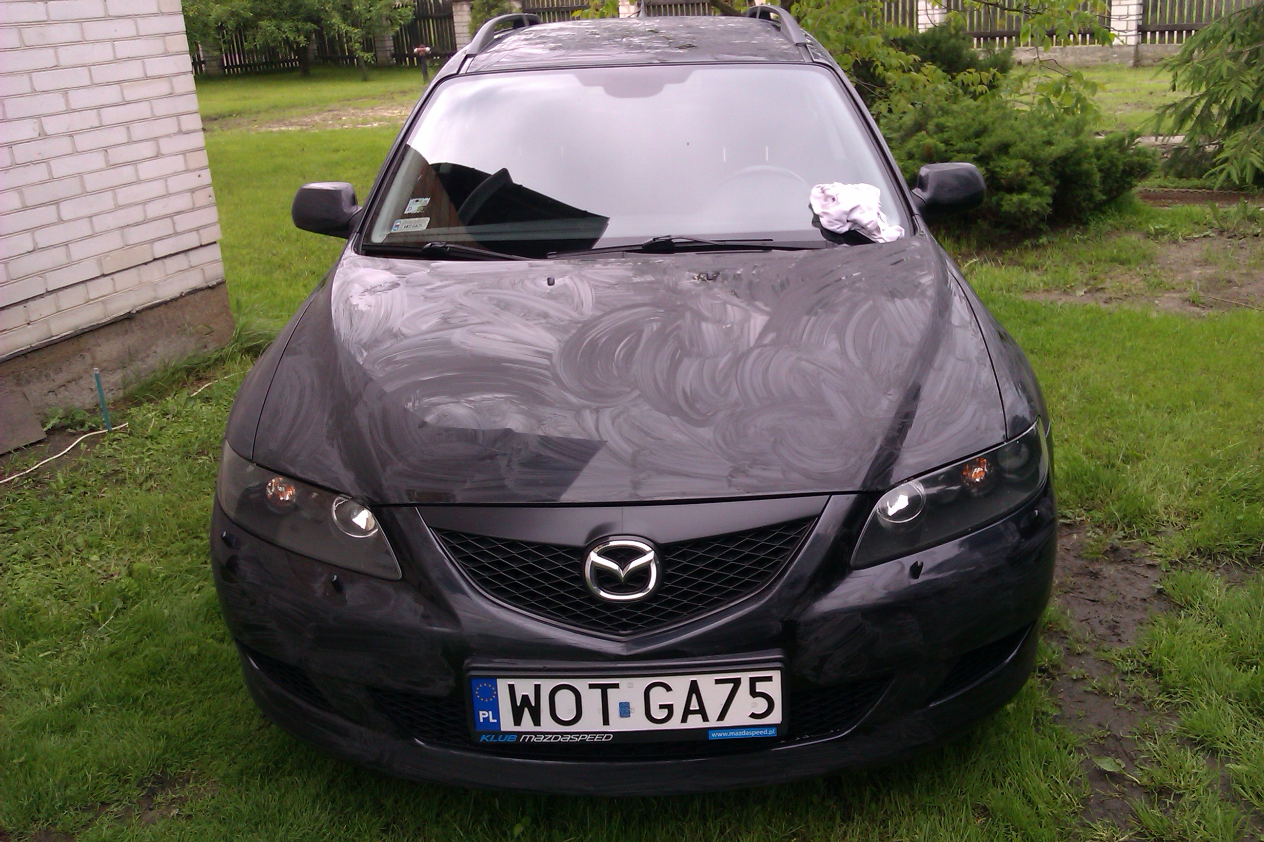 Korzystając z dzisiejszej pogody postanowiłem nadać mojej madzi trochę blasku, najpierw umyłem auto szamponem SONAX, następnie benzyną ekstrakcyjną umyłem prawą i lewą stronę auta oraz bagażnik z asfaltu pozimowego (byłem w szoku ile tego było w stanie się po oklejać na aucie) a przy okazji w końcu zebrałem się w sobie i usunąłem naklejki z bagażnika z którymi już zakupiłem auto