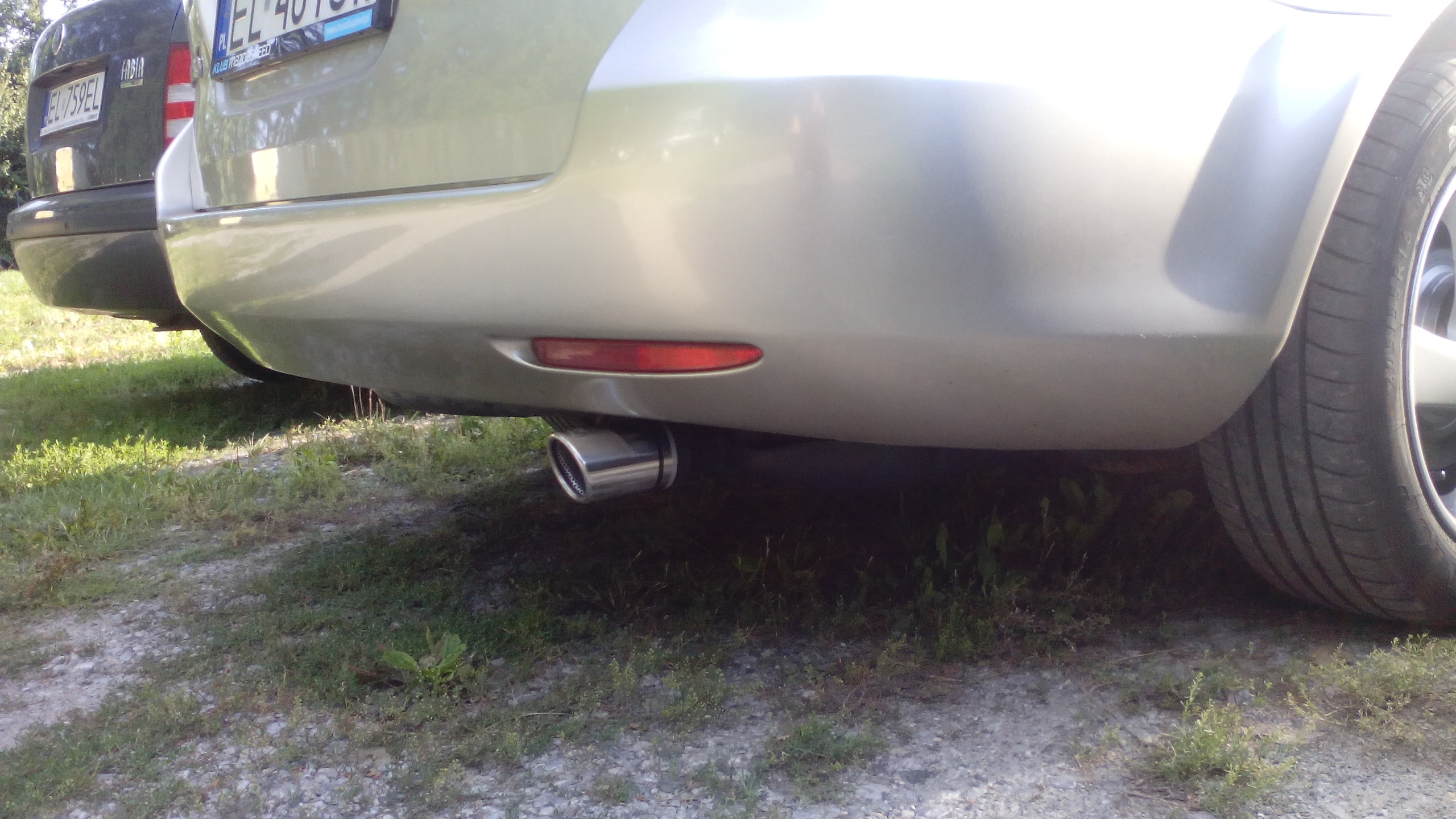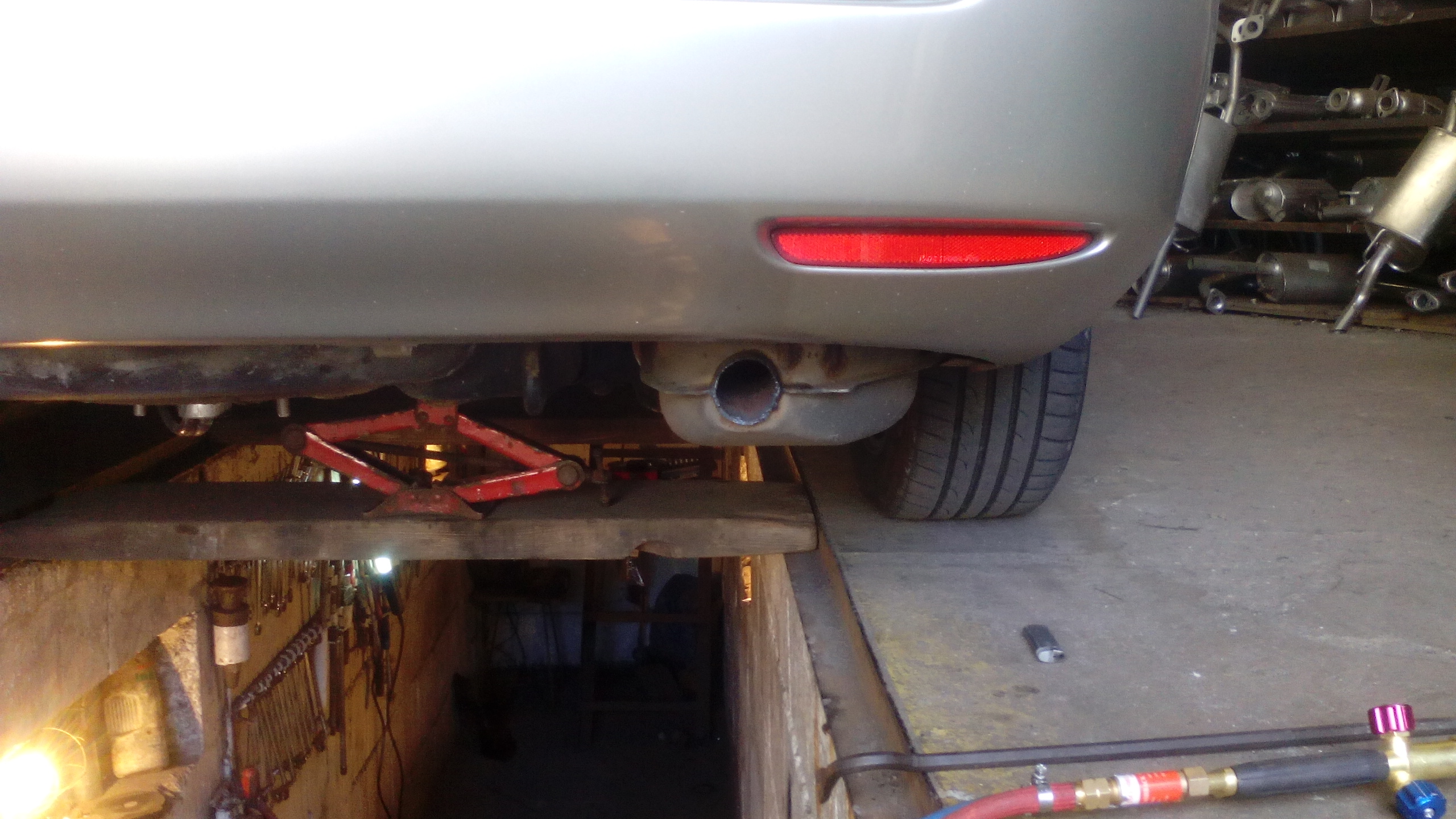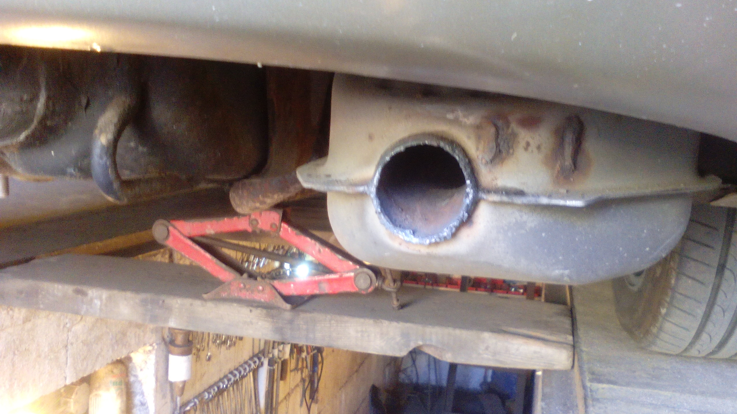 Żeby zaoszczędzić rzeźbienia z dopasowywaniem końcówki, fachura poprostu opuścił mi trochę tłumik na ostatnim zawieszeniu, usunął zagięty koniec rury i wspawał nową końcówkę.