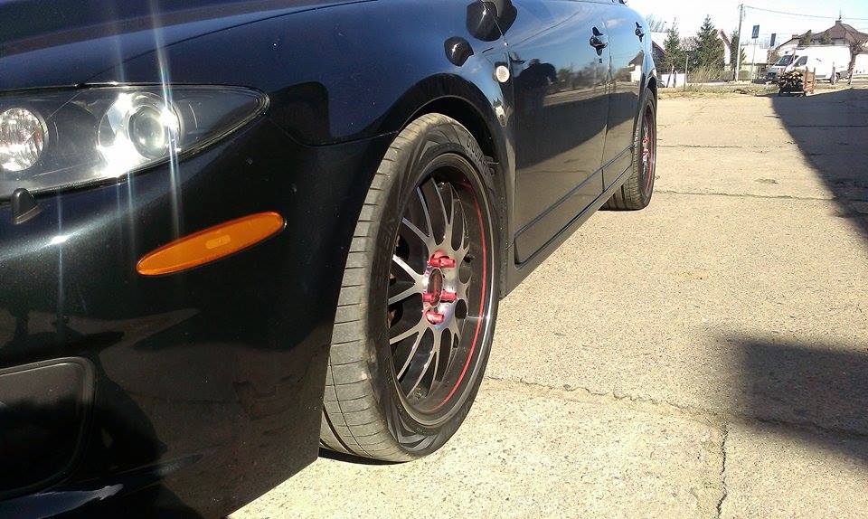 Wg mnie jest całkiem ok z tą felą – ale chyba lepszy efekt byłby gdyby nie miały one czarnych elementów, a byłyby 100% srebrny połysk + czerwony rant i czerwone nakrętki – niestety ale 6 MPS jest mocno masywna wizualnie i – tak jak pisali przedmówcy – lepiej wygląda na felgach, które też sprawiają wrażenie masywnych, a "czarny wyszczupla"