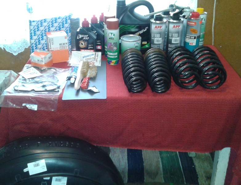 Przy zmianie oleju wyczyściłem metalowe elementy podwozia z rudej i poczęstowałem Brunoxem. Pod koniec miesiąca biorę się za konserwację podwozia, bo mega paka produktów czeka :) Dodałem też środek do czyszczenia wtrysków Liqui Moly, bo zalałem lipnego paliwa na stacji :(
