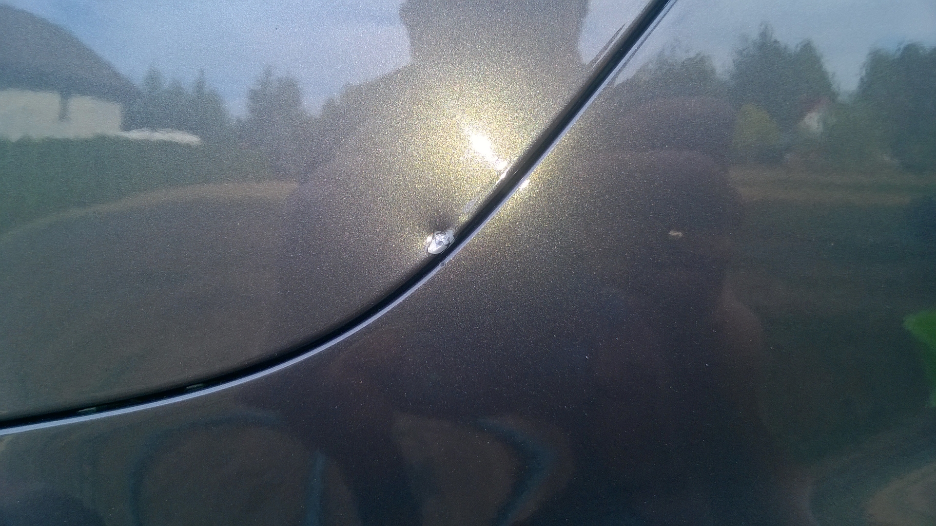 Nie wiem jak to się stało, ale dziura w lakierze do samej blachy. Drzwiami nikt przywalić nie mógł, bo parkowałem w uliczce, w której samochody stoją pojedynczo po jednej stronie.