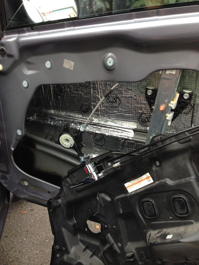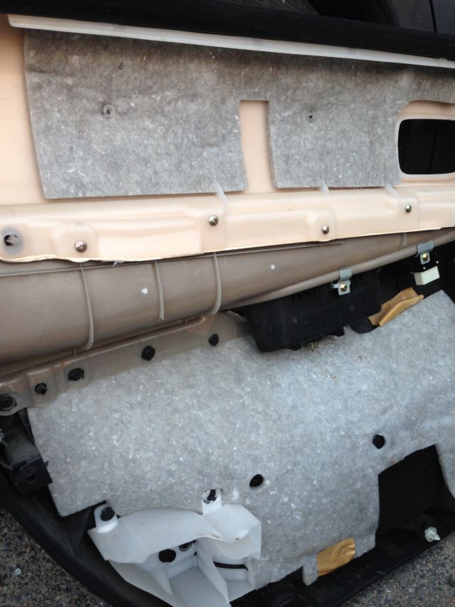 żeby tapicerka nie trzeszczała fabryczne wygłuszenie zostało ściągnięte i wyklejone gąbką (została mi z wygłuszenia podłogi)