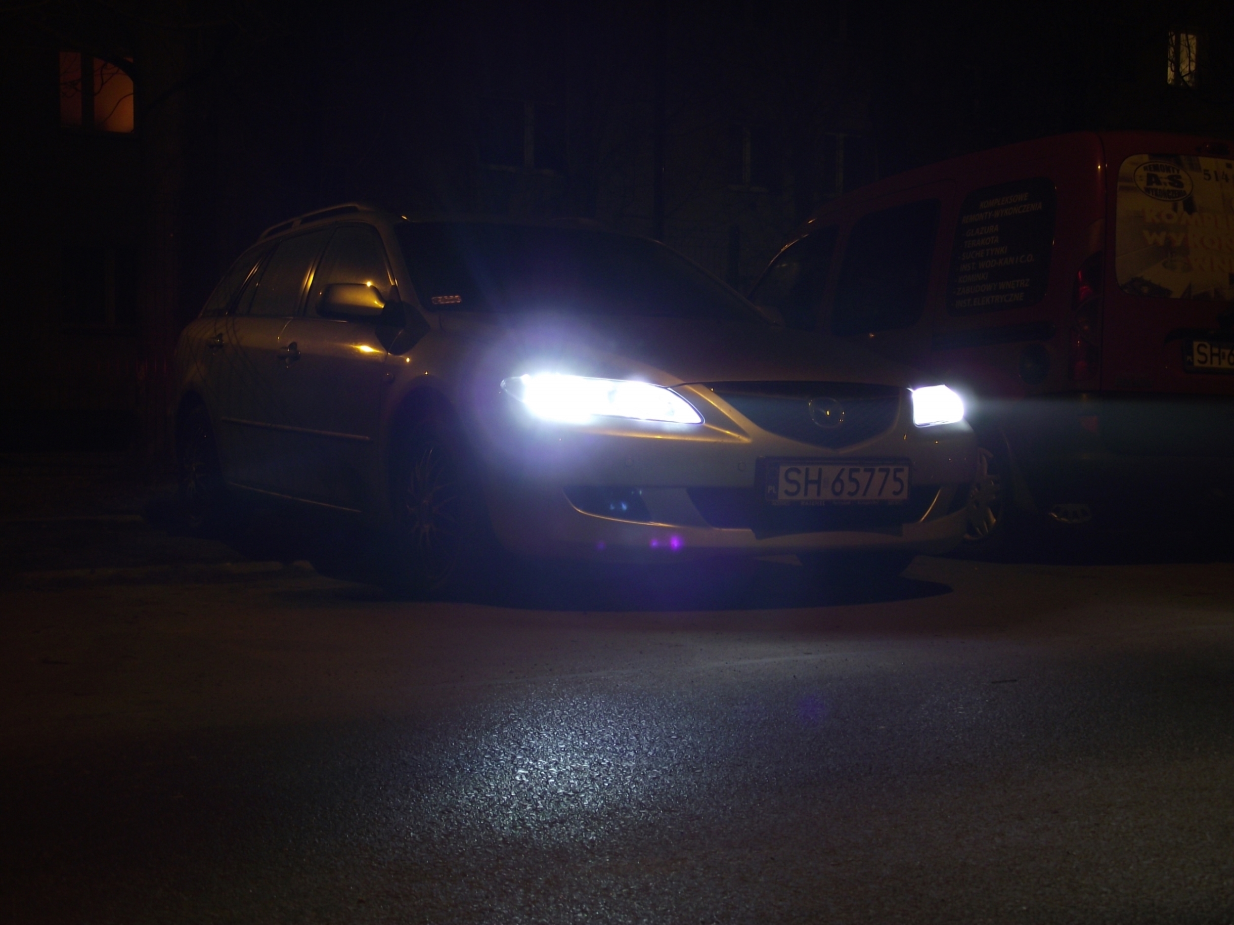Przypatrywał się, ale powiedziałem, że homologacja jest, światła u diagnosty ustawione, przegląd podbity i wszystko gra. Powiedział tylko, że powinny być spryskiwacze i samopoziomowanie. I się wywiązała dyskusja. Ale nie mówili żeby je zdjąć, czy coś. Widzieli, że profesjonalnie zrobione, to co tu mówić <diabełek>