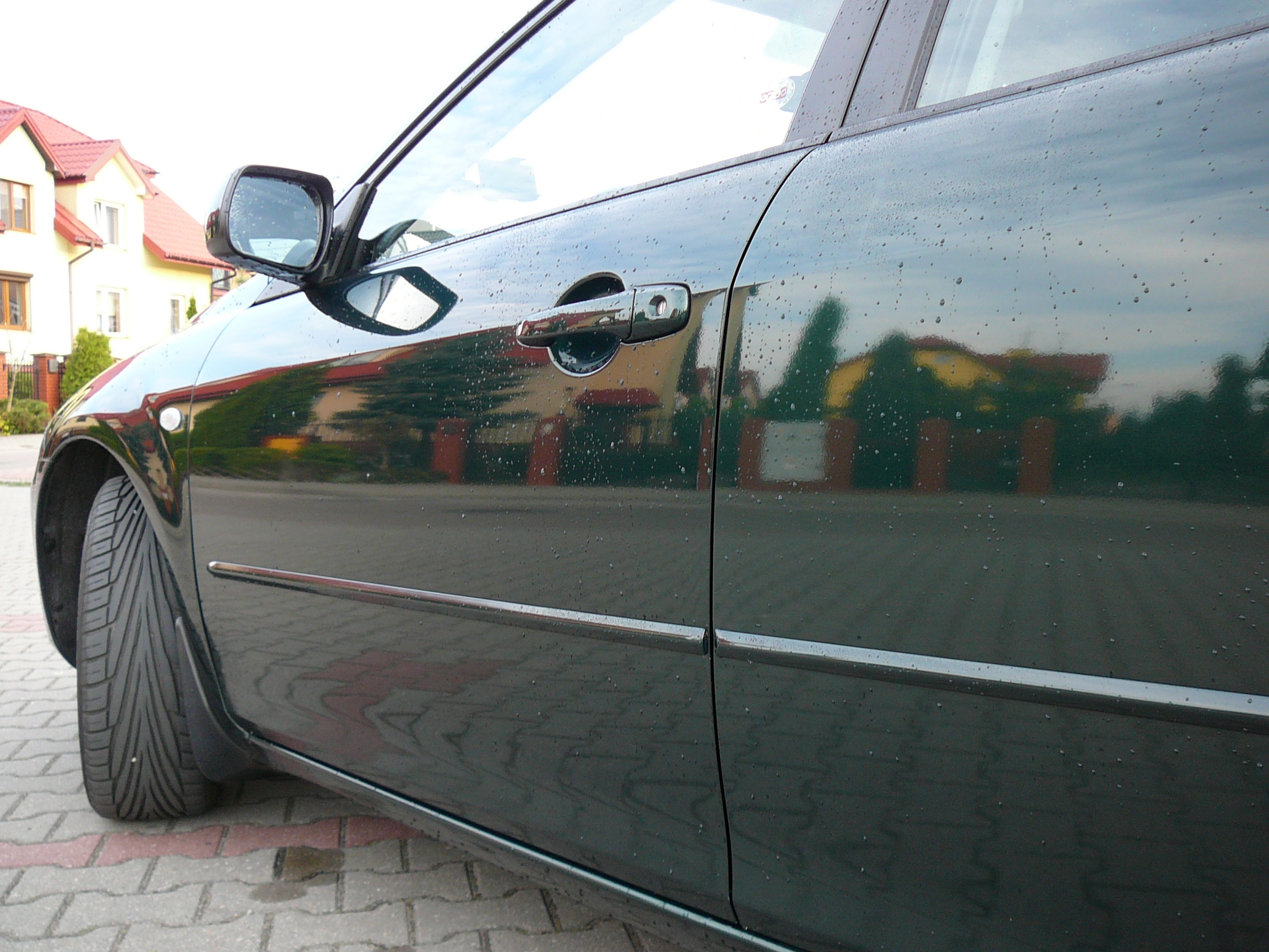 duża ilość wody od razu spływa, zostają tylko drobne kropelki na lakierze