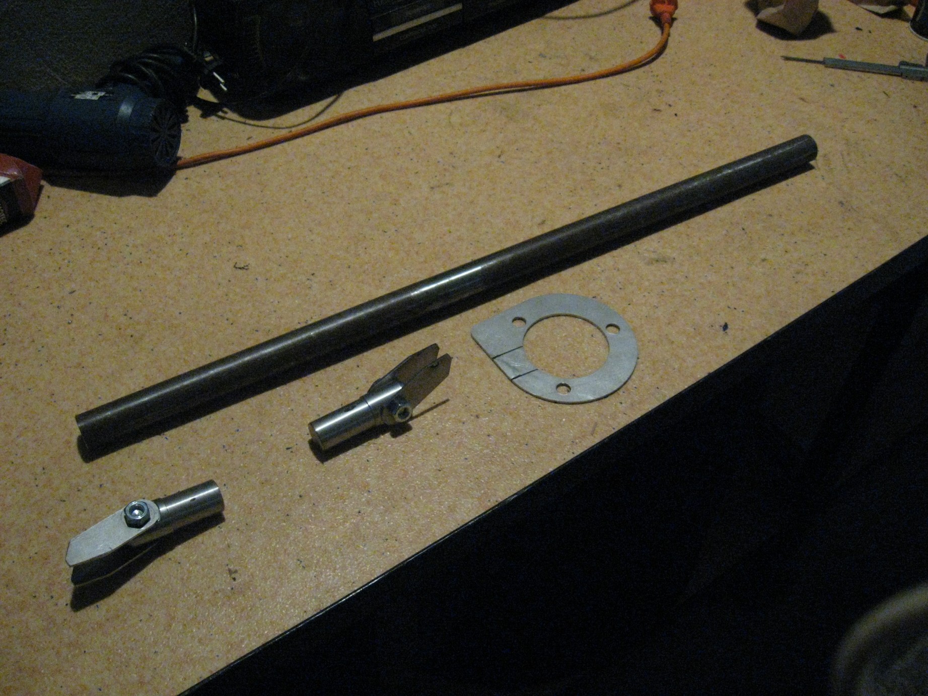 Sworznie są już przyspawane do rury uciętej na wymiar.Teraz tylko przykręcić te blachy do kielichów i przykręcić rurę poprzeczną na śrubę m10.