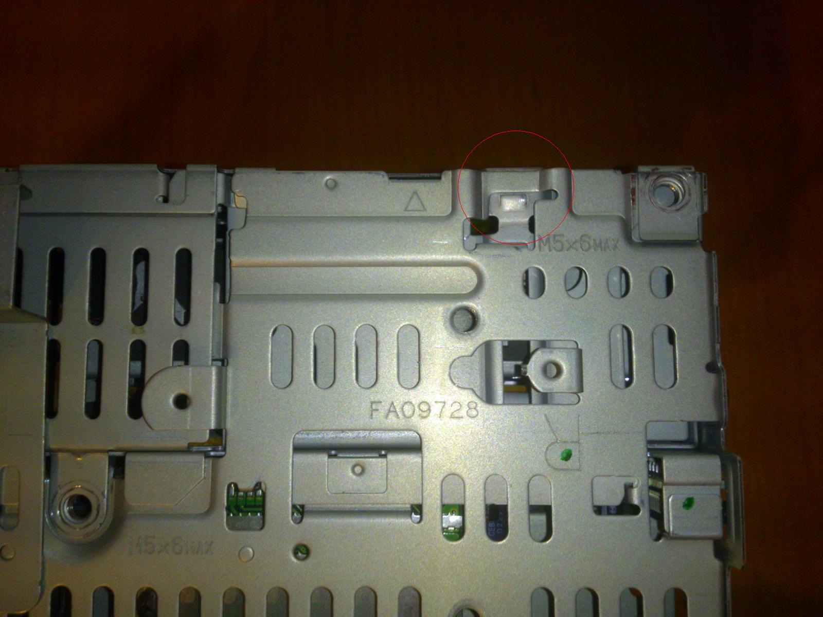 W miejscach zaznaczonych na zdjęciach podwadzamy śrubokrętem o rozdzielamy CD od radia.