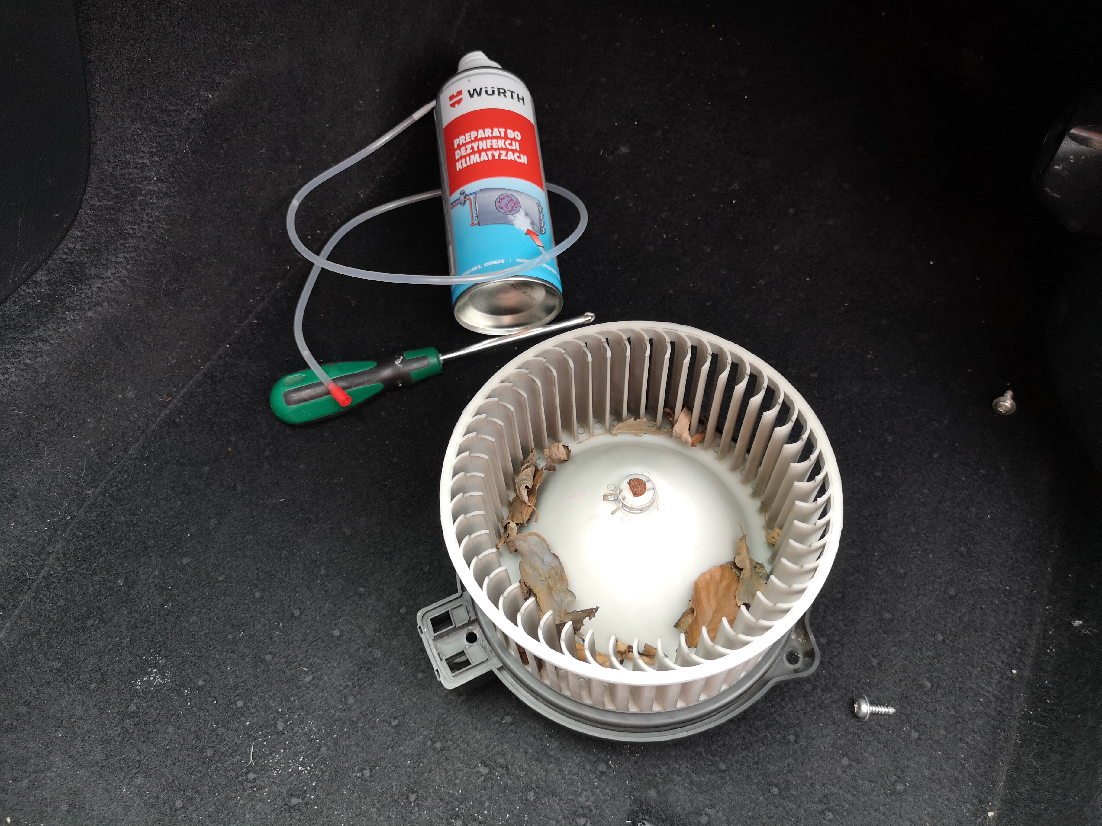 Klima odgrzybiona, dostałem się do parownika i poszedł oprysk z wurtha, dodatkowo umyłem wentylator.Pozbyłem się liści i wreszcie nic nie brzęczy w kabinie.