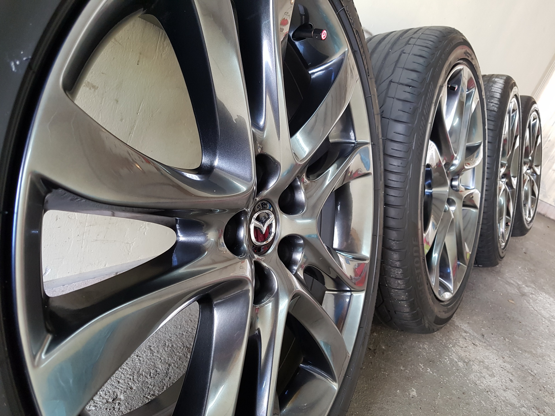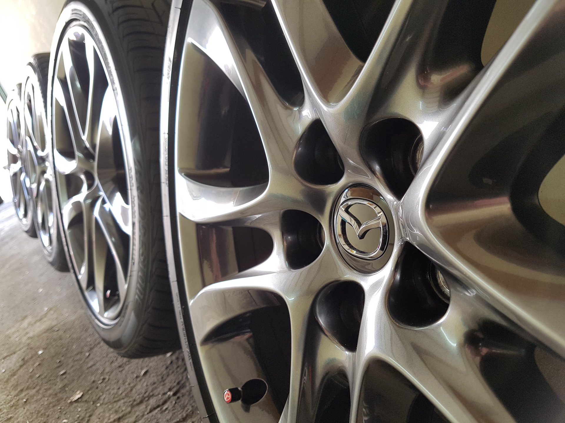 Satin Chrome. Wg mnie trudny do uzyskania samemu. Bo tam też jest chyba kilka warstw. Niestety wielu ma problem z łuszczącym się klarem na felgach. I jeśli ta nie jest gdzieś przytarta to Mazda wymienia je na gwarancji... U mnie na razie spokój.