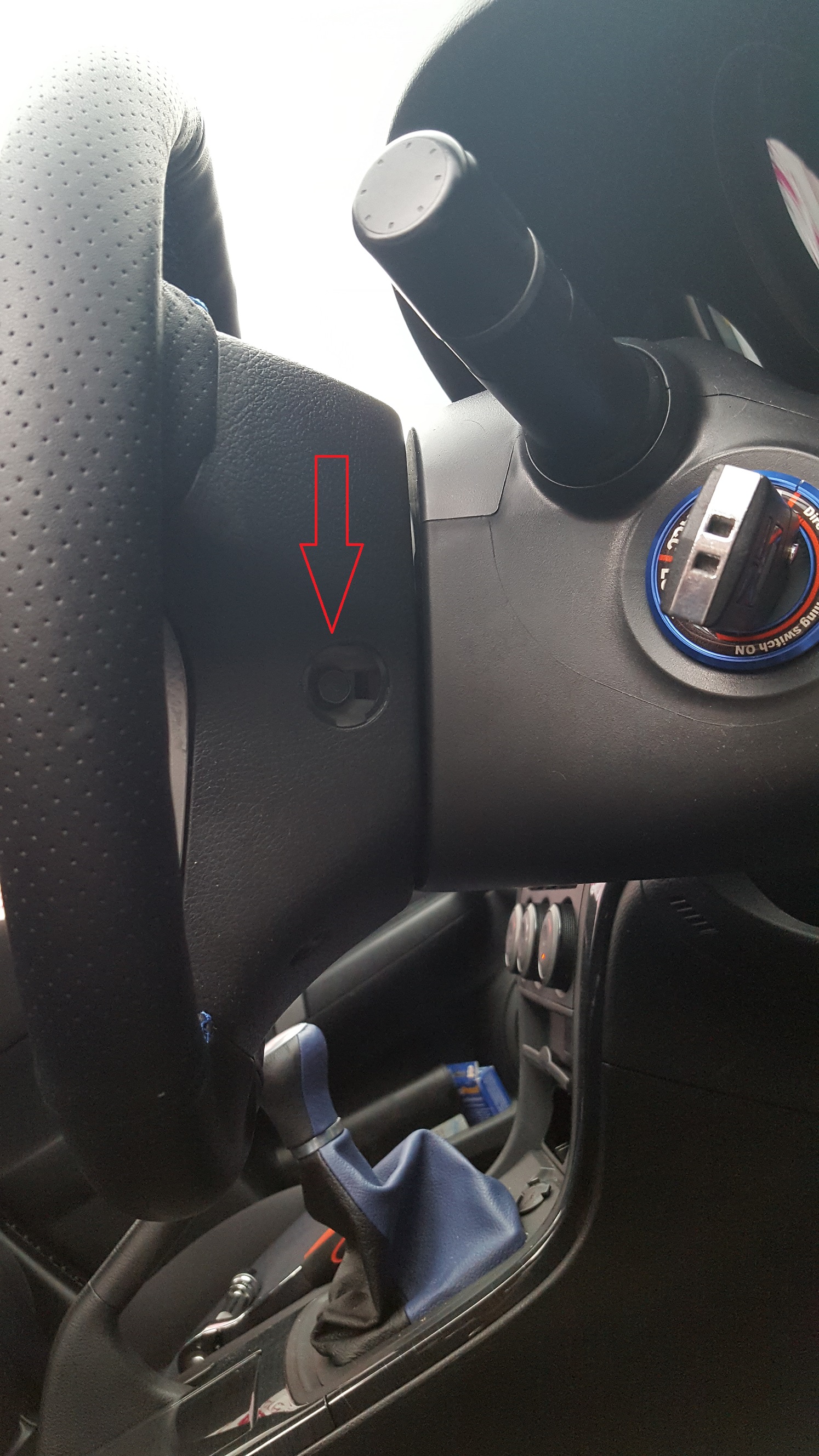 Ściągamy zaślepki i odkręcamy airbaga z klaksonem za pomocą klucza nasadkowego 10