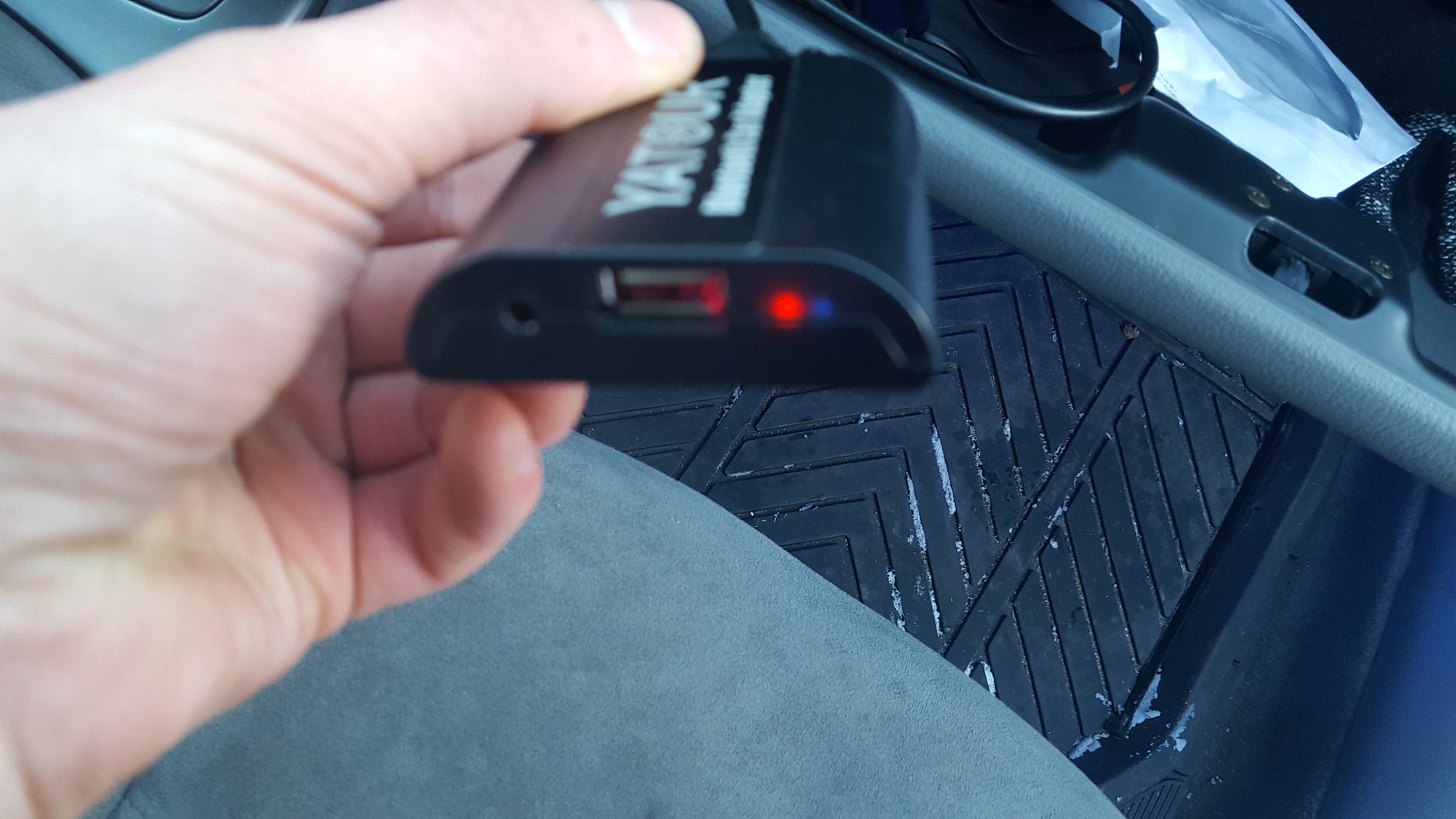 Następnie wpadła zmieniarka MP3 Yatour z modułem BlueTooth. No i tutaj zaczynają się problemy. Podczas pierwszego podłączenia zmieniarki wszystko było ok i działało. Jednak zauważyliśmy, że nie działa jedno z podświetleń pokrętła i pokrętło od głośności. Wyjęliśmy z powrotem radio w celu wymiany podświetlenia i po ponownym zamontowaniu radio niestety przestało działać. Po uruchomieniu wyglądało to tak: