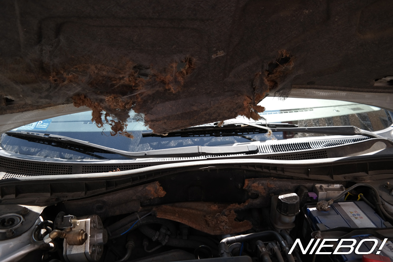 pod maskę i narobiła spustoszenia ... już to kiedyś widziałem u kolegi kciuku88 i myślałem, że nie jest możliwe żeby mnie to spotkało... a jednak ... człowiek wyjedzie na chwilę z miasta do dziczy i już – za przeproszeniem – jakieś zwierzę zrobiło niespodziankę... co z tym zrobić ?!? ...