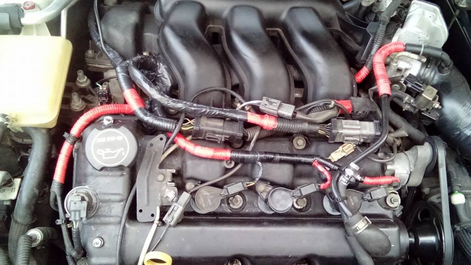 żeby nie było to jeszcze kilka fotek z "grubej" roboty wykonanej w lany poniedziałek, gdzie oprócz ogarniecia wspomnianej lampy z tyłu trzeba było podziałać taśmą izolacyjna, bo przed wyglądało to już miejscami bardzo słabo po tych 12 latach i debilnym umiejscowieniu, gdzie ciagle się wszystko nagrzewa.. niestety tasma zwykła, w dodatku zabrakło w trakcie czarnej wiec doszły czerwone wstawki :P Przy okazji wpadła "hiper profi" stabilizacja rozwalonego przez poprzednia wlascicielke mocowania lewego lusterka, które do tej pory dzielnie trzymało się na trytytytce może przez kolejne dwa lata zbiore się w sobie i wymienie na nowe nieuszkodzone :P udało się tez od nowa nagwintować otwor pod srube do trzymania mocowania aku, bo do tej pory też było to spiete na trytki z tej jednej strony :P a i wycieraczki denso wreszcie wpadły po kilku miesiącach leżakowania w pudełku – naprawdę dobre są :D w podzięce za te zmiany podczas swiatecznej trasy powrotnej od rodziny tak 30 km przed Wawa coś zaczęło tyrkotac.. jak się okazało poszedł częściowo pasek osprzętu, ten zmieniany kilka miesięcy temu przy okazji zmiany uszczelek.. auto trafiło więc do warsztatu, gdzie przy okazji ogarnięty będzie jeszcze jeden wyciek oleju na wężach.