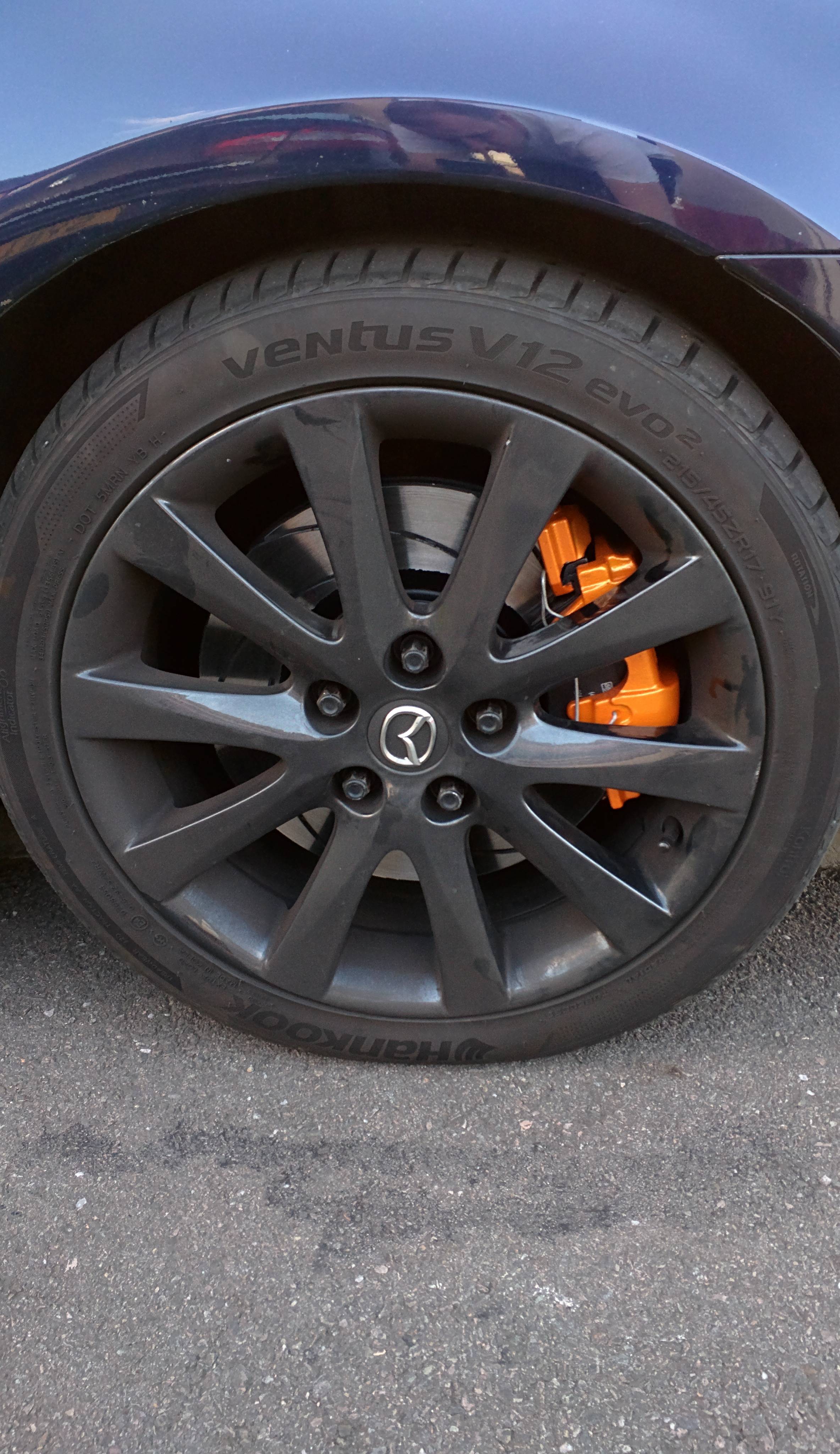 Dodatkowo zostało wymienione łożysko w przednim lewym kole. Tarcze malowałem przed założeniem, całe. Klocki zdarły nadmiar farby i tak to teraz wygląda.