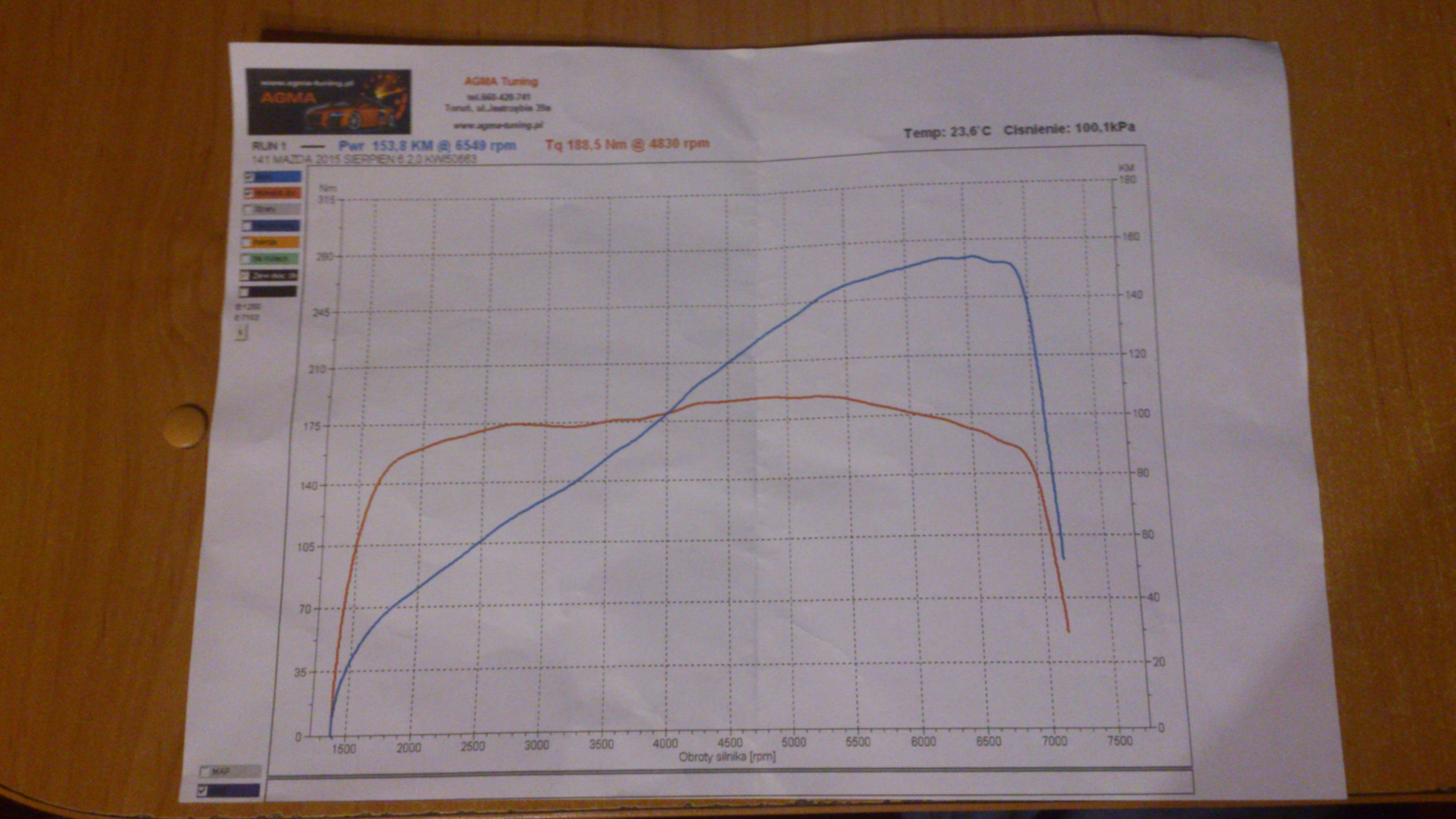 Tak wygląda wynik z hamowni, zresztą wydaje mi się, że ona zawyża: 153,8KM/188,5Nm