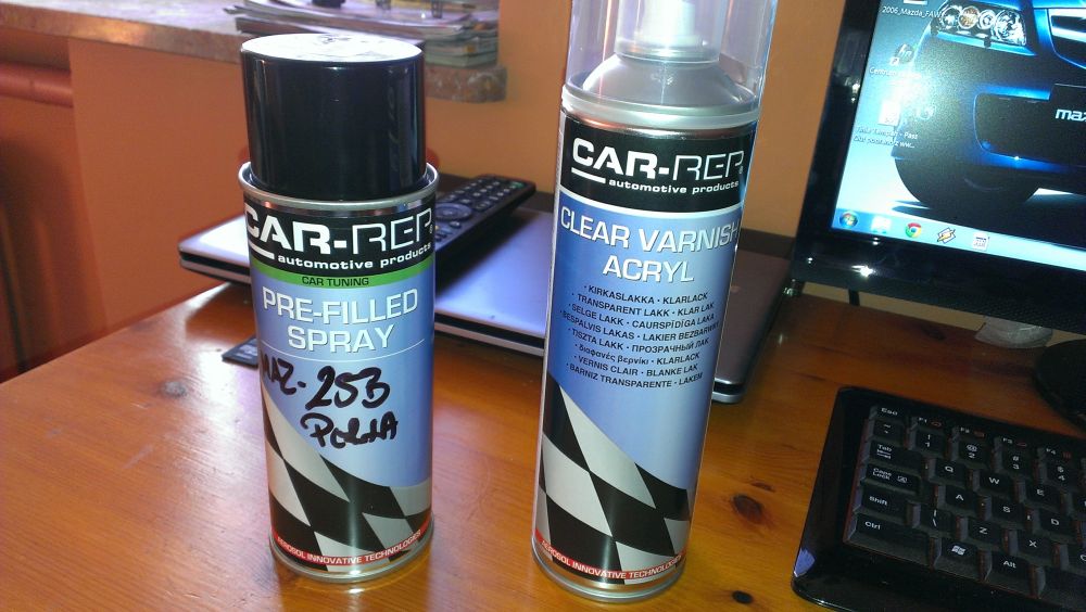 W takim razie proszę bardzo. Po malowaniu zderzaka zostało troszeczkę farby więc pojechałem tam tam gdzie trzeba, powiedziałem, żeby powtórzyli mi kolor i zapakowali w spray. Po 15 minutach było gotowe. Dodatkowo lakier bezbarwny. Zaraz się zabieram do roboty