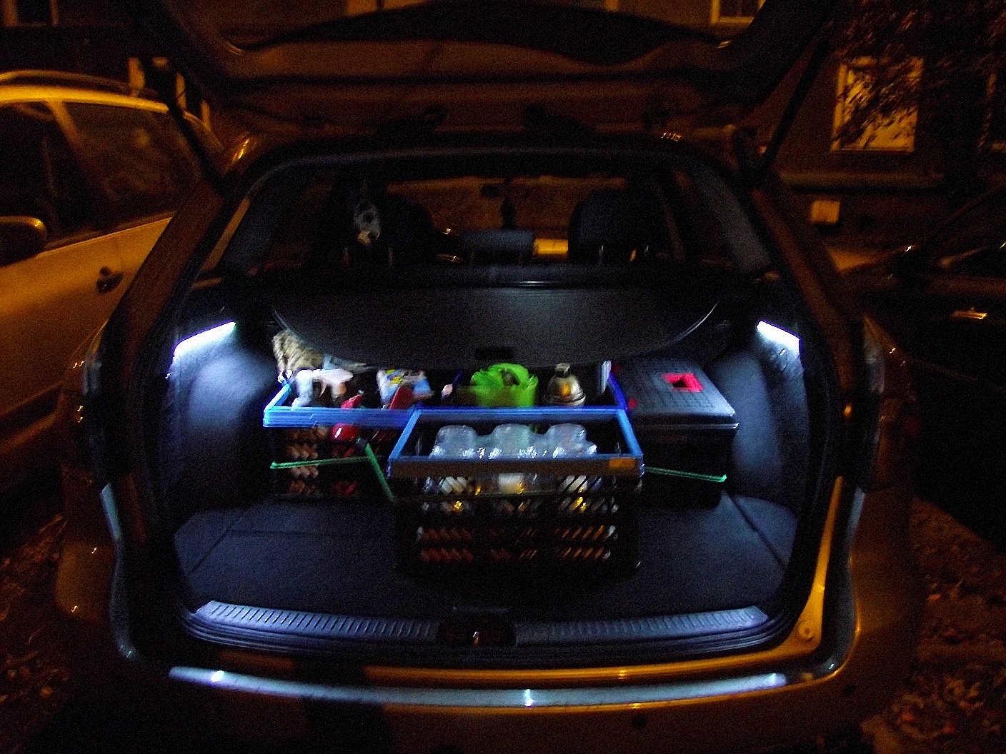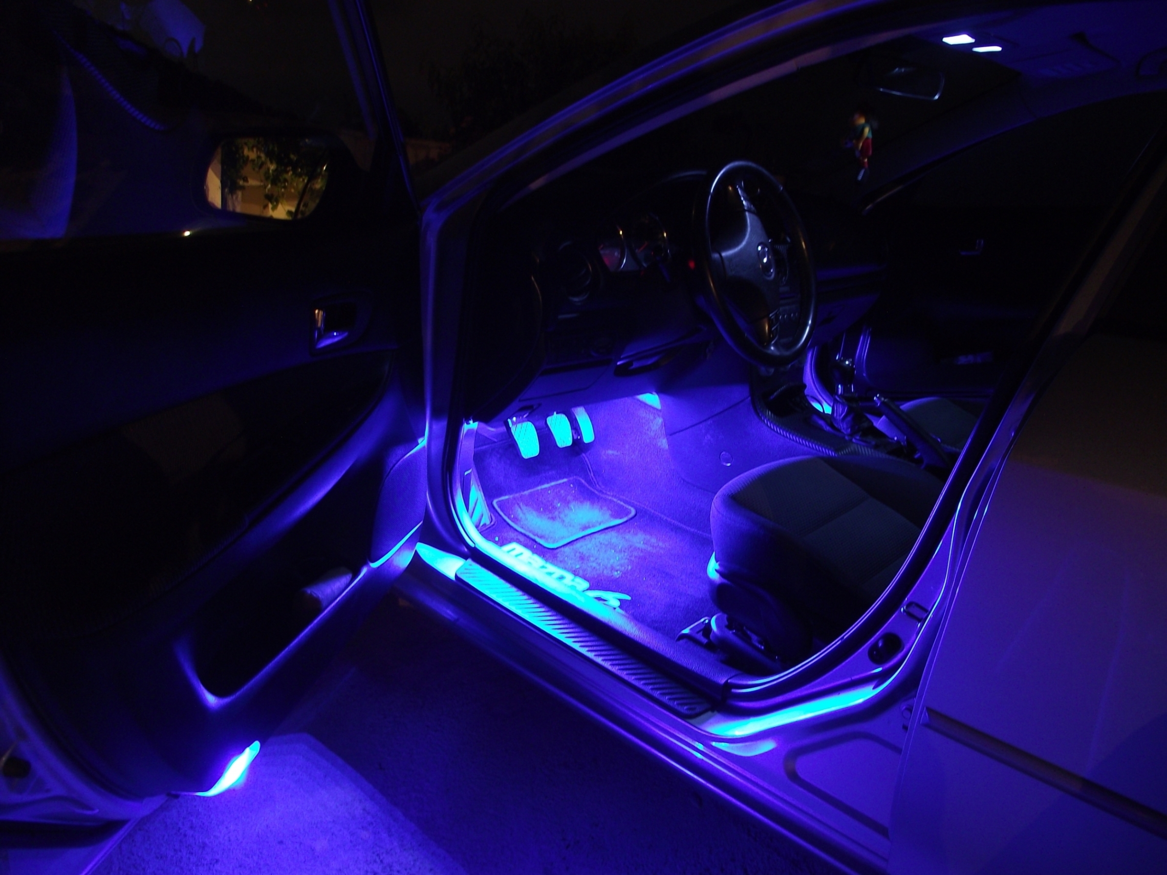 – wymiana oświetlenia wewnętrznego na białe LEDowe (kabina + bagażnik) + drzwi – niebieskie LED;