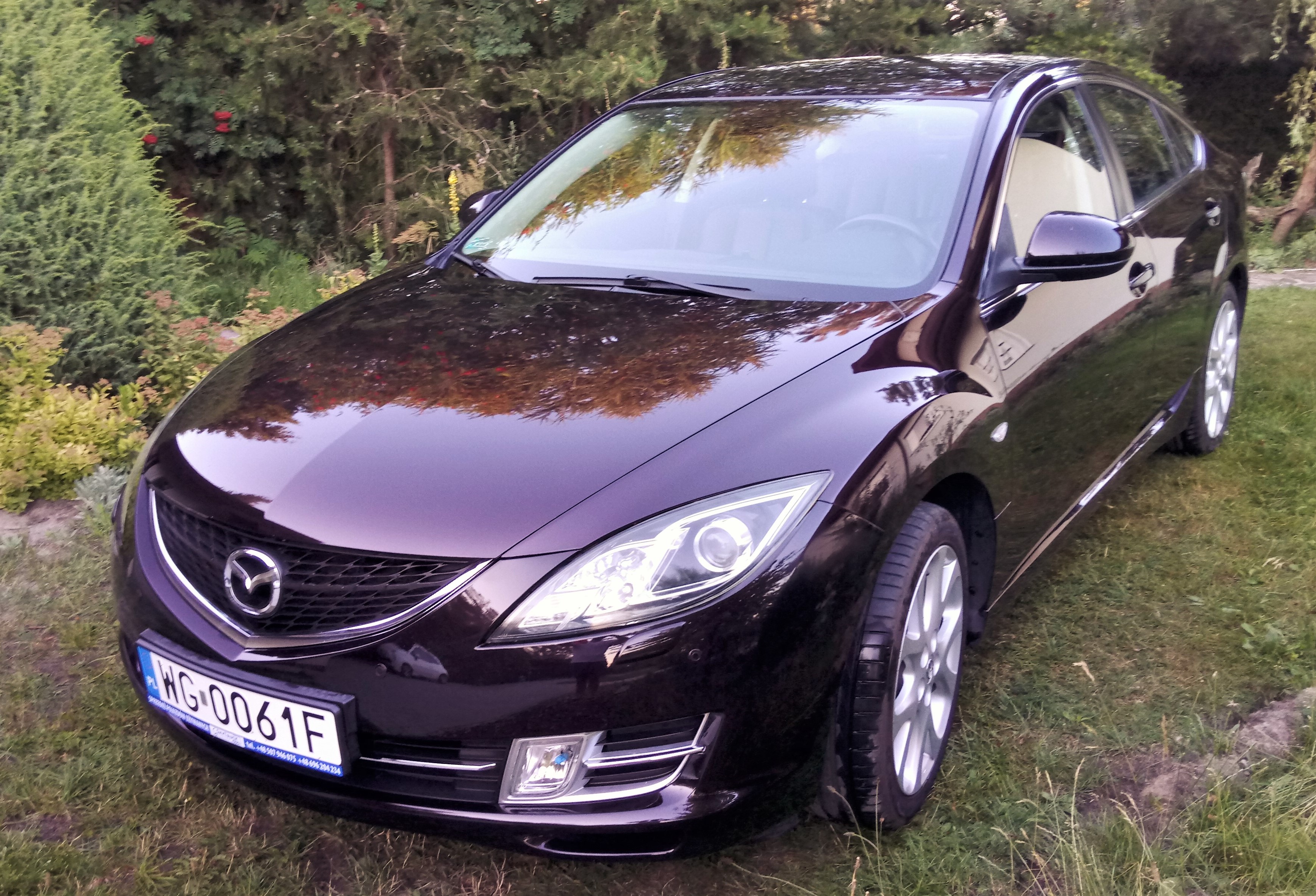 Mazda 6 GH z silnikiem 2.5 L5 z 2008 roku, hatchback, w wersji wyposażenia TOP w kolorze Radiant Ebony, a w niej: