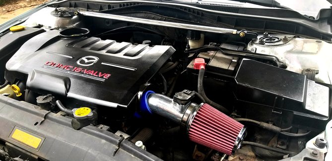 pytam jaki silnik a on że 2.0 Benzyna 141 koni... po tym jak u wiekszosci posiadaczy tych jednostek widzialem 2 wydechy zgłupiałem jak zobaczyłem u siebie taka mała rurke jak w maluchu... zapytałem raz jeszcze czy na pewno... sprzedawca nie powiedział jednak ze to był po prostu PrzedLift... a ja się aż tak bardzo nie znałem ale koniec końców zdecydowałem się na zakup w cenie 4 800 zł darował mi 200 zł i poszło na benzynke wyszło słoneczko w środku poczułem nutke komfortu i nagle... po 60km CHECK... no to świetnie powiedziałem sam do siebie.. dlatego był taki tani... ale jakoś to przełknąłem i dojechałem do domu okazało się później że została wspawana strumiennica Kata nie ma błąd będzie... już i tak się przyzwyczaiłem ... jeździłem 2 miesiace w pełni seryjnym samochodem w dodatkun srebrnym na 15 calowych alufelgach myśląc że patrzy na mnie cały Konin siedzac w zwykłej Mazdzie 6 ktora po zaparkowaniu przy Galerii stała co 3 wóz ... wiec musiałem coś z tym zrobic w ruch poszedł laptop i wrzuciłęm post na grupie majacy na celu dowiedzenie się czegoś o tym samochodzie ..pierwszy napisał do mnie Mariusz Dejneka którego z resztą pozdrawiam... mówił na początku o sprężynach Obniżających .. od słowa do słowa wszystko juz wiedziałem..a ja oczywiscie podniecony zacząłem szukać od razu po odłożeniu słuchawki ..Mariusz mówił H&R -30mm/-35mm zależy jak usiądzie ale od KOMBI .. znalazłem ! 250zł używane kupione założone ... przód bajka zakochałem sie tył..wisi... okazało się że się z kolegą nie zrozumiałem ponieważ usłyszał on że posiadam instalacje LPG i dlatego sprezyny od kombi sprawdza się idalnie ponieważ u niego tak wlaśnie jest i siedzi idealnie... zmieniłem na oryginalne ... kupiłem 3miesiace pózniej felgi ASA REVOLUTION 18' na oponie 45/215 wyglądało obłednie ale Mariusz mówił ze KOZA weźcoś z tym zrób.. sprzedałem H&R kupiłem sprezyny firmy JAMEX służą mi do dziś dobre wydane 400zł
