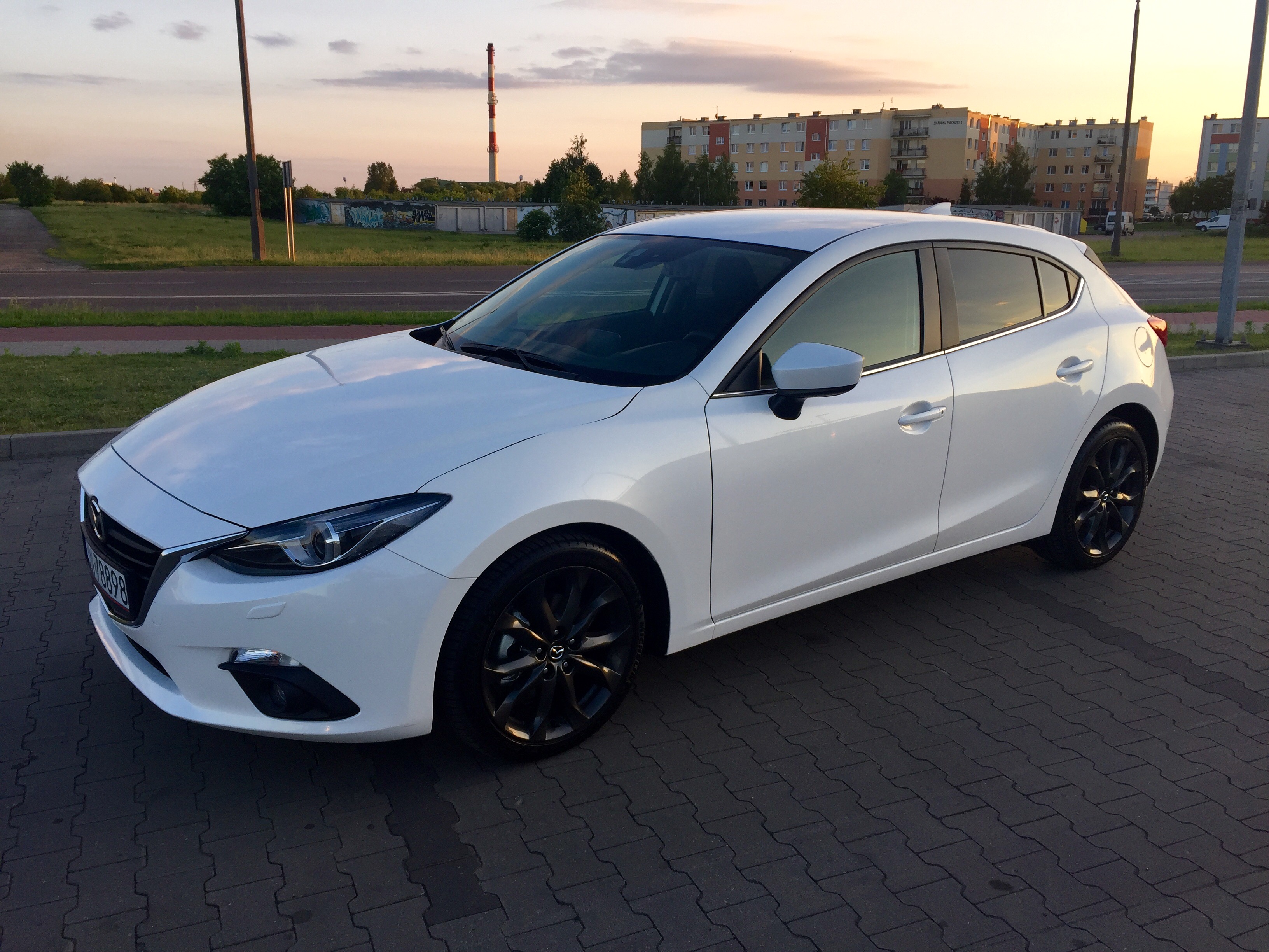 Z początkiem czerwca stałem się szczęśliwym posiadaczem nowego samochodu Mazda 3 BM w wersji ENSO hatchback o pojemności 2.0 o mocy 120 km. Kolor "biała perła" tj Snowflake White. Samochód na który "chorowałem" juz 2 lata, stał się faktem. Marzenie wreszcie się spełniło.
