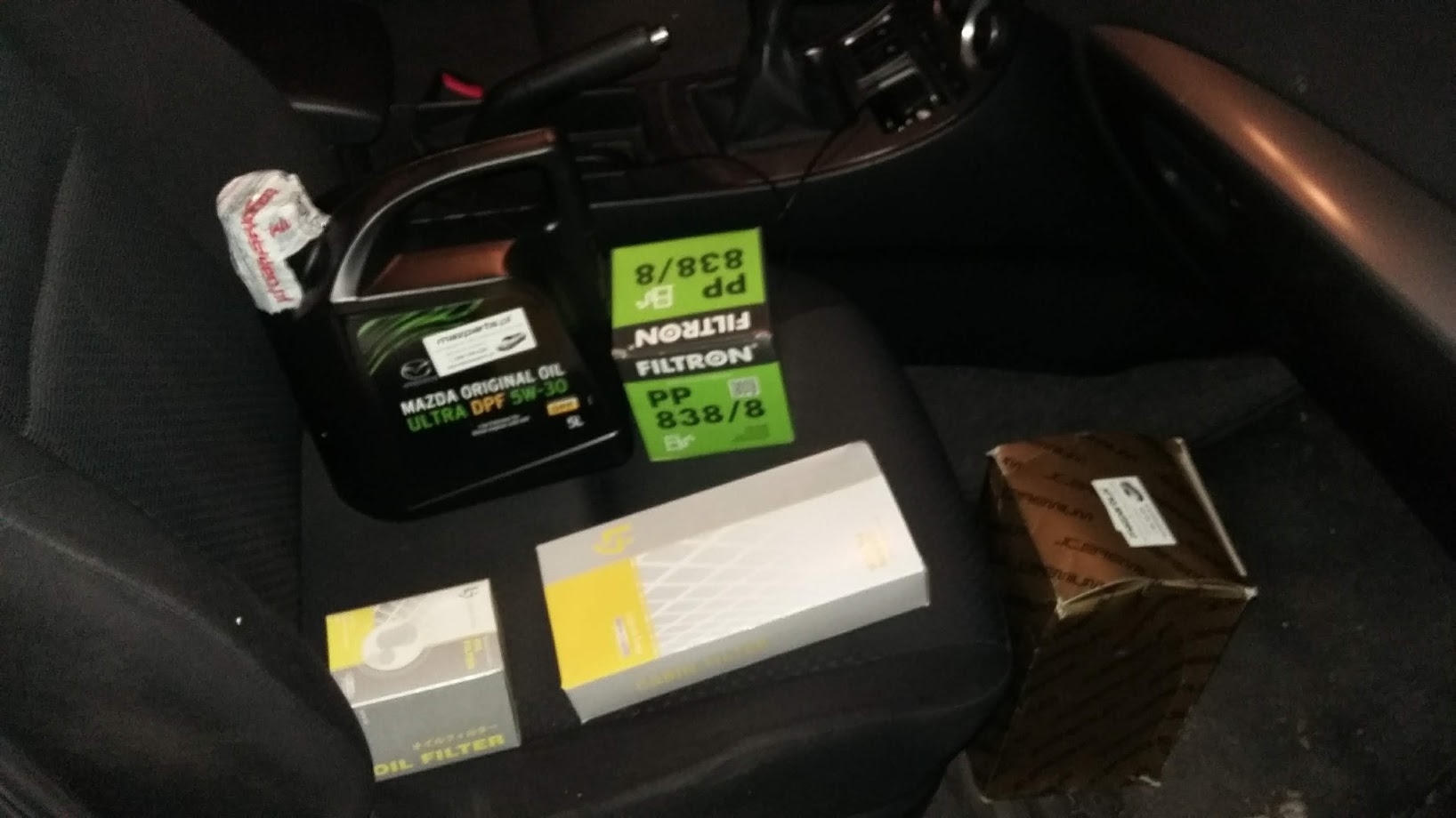 Dzisiaj po raz 3 w karierze u mnie wleciały nowe filtry oraz olej. W środę zmiana na kapcie zimowe i felgi 16. Części jak zwykle w mazdaparts.pl a wymiana w LB Japan Serwis.