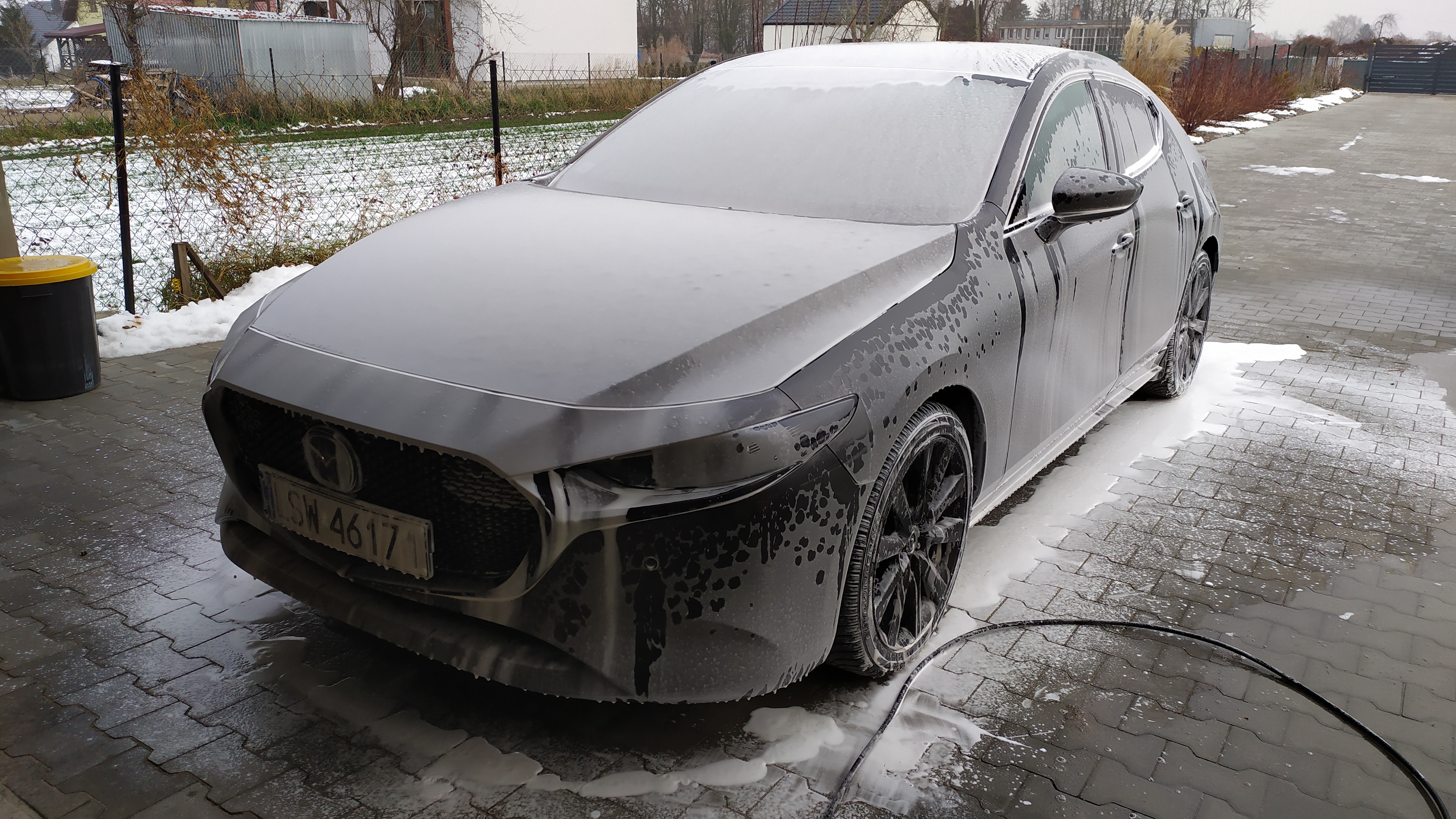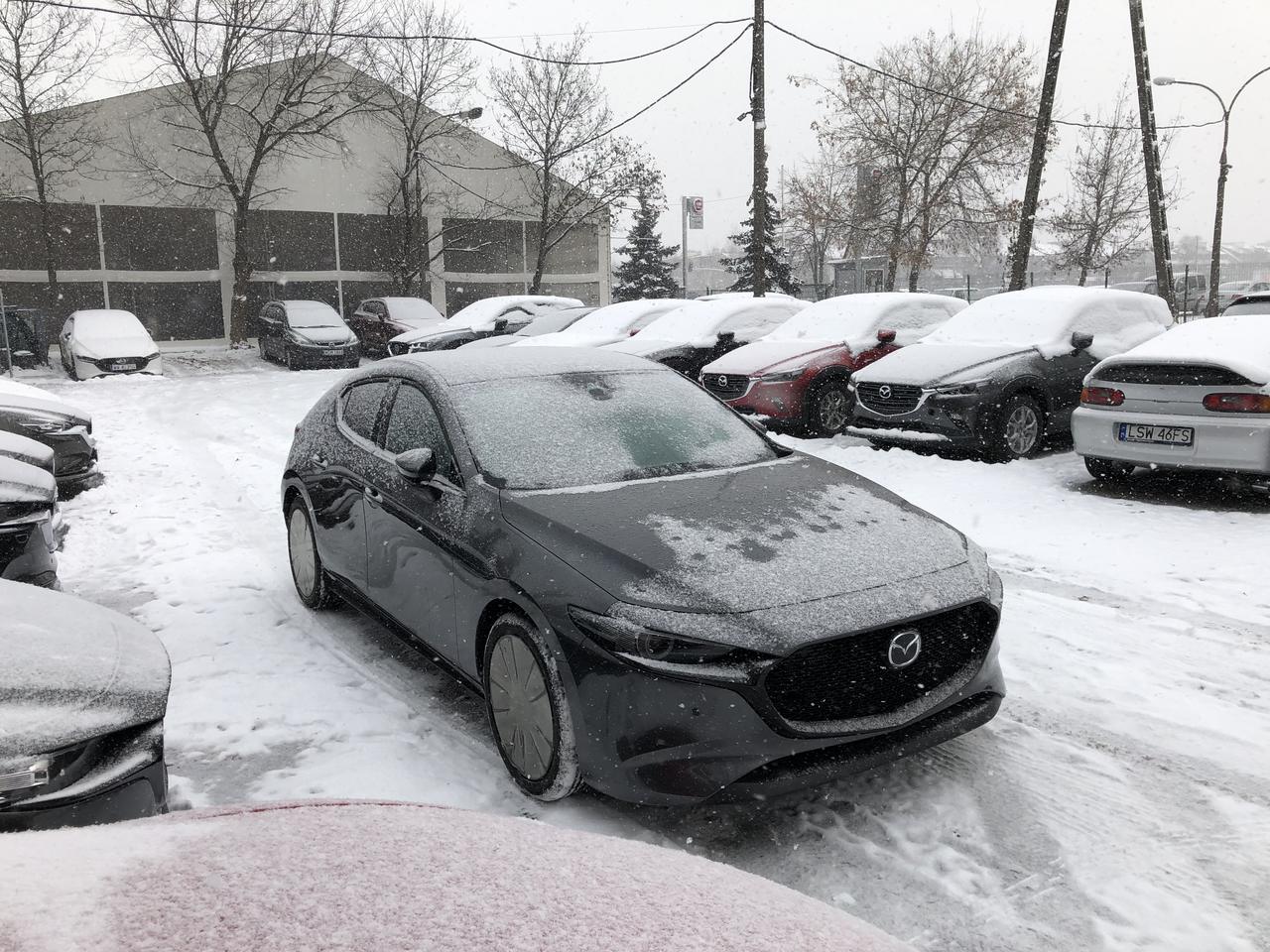 Kiedy podjęta została decyzja o zamianie auta, a jakże z Mazdy 3 BL na nowsze auto było kilka krótkotrwałych pomysłów by nie była to Mazda... Ale... Wizyty w salonach by z bliska przyjrzeć się 3BP, wybór koloru, wyposażenia, póki co w głowie i... początek stycznia był odpowiednim momentem by już bardziej konkretnie zainteresować się autem. Kilka zapytań kilka maili i... pojawiła się bardzo konkretna propozycja od Karola z Mazda Bołtowicz Warszawa... Hatchback, automat, Hikari i Luxury Black, SkyActiv X i Machine Gray... kurcze... a w garażu miały być dwie czarne M3... Kilka telefonów do Pana Michała, który cierpliwie znosił moje pytania i decyzja, że... szary też będzie ładny :P Dodać trzeba, że do odbioru auta nie widziałem go na żywo :) Pech chciał, że kiedy udało się zrobić zdjęcia nad Warszawą przeszłą burza śnieżna... ale co tam?