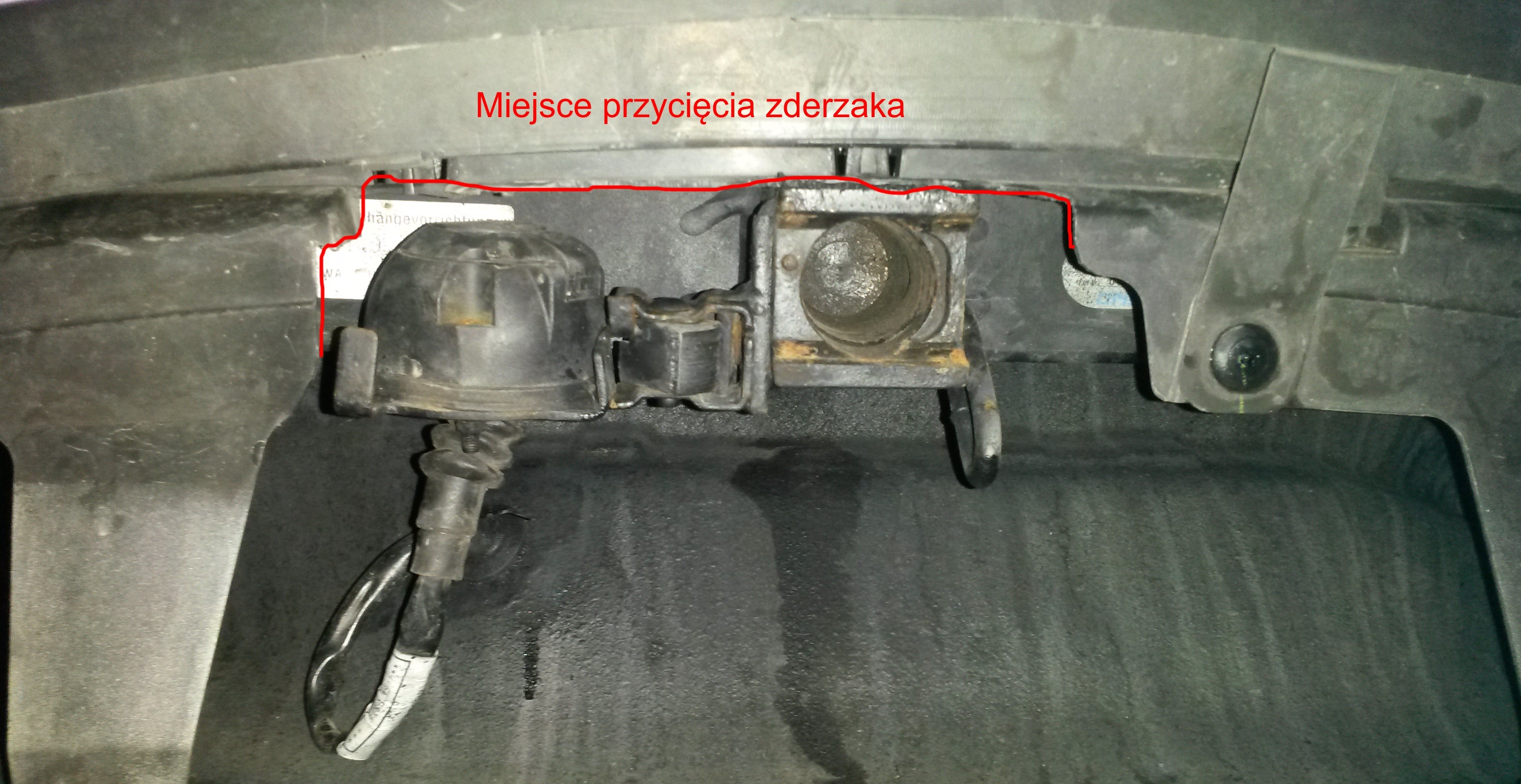 Zamontowany hak :) . Po założeniu odpinanego haka trochę dopycha zderzak do góry około 3mm. Nie przeszkadza to w niczym, deformuje się tylko dolna czarna część zderzaka (tak jak widać na zdjęciach). Troszkę było trzeba przyciąć zderzak od dołu aby gniazdo elektryczne można było schować
