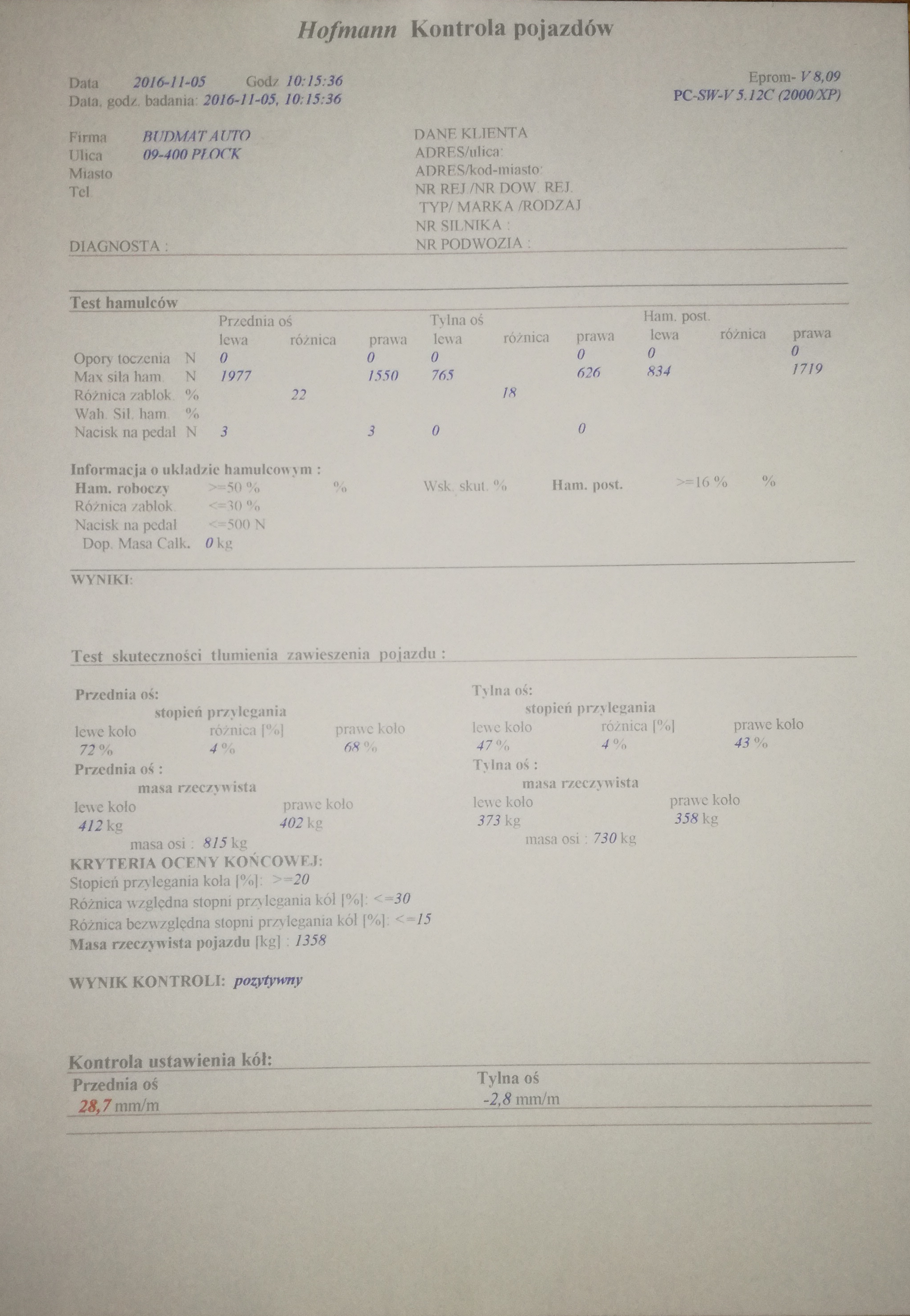 karteczka z badania technicznego wyglądała takI ręczny trzeba poprawić, bo jedna strona coś słabo łapie i w ogóle za wysoko się zaciąga