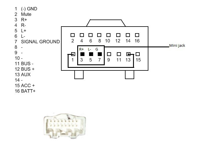 następnie czerwony, czarny i zielony (lub zielono czarny). Do końcówek należy doczepić odpowiednio pod wejścia R+, L- i G kabel audio. Chcę jeszcze dodać że wtyczkę trzeba zmodyfikować od dołu gdzie jest ten zaczep trzymający musimy wciąć takie cienkie paseczki wystające inaczej nam wtyczka nie wejdzie, jak się udało podłączyć. Odpalamy radyjko naciskamy AUX i podłączamy mp3 w głośnikach powinna zacząć grać muzyczka