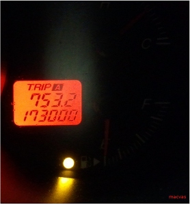 ). W dniu wyjazdu wg. "pływaka" miałem jakieś 3/4 baku. Jak wspominałem, z uwagi na niefabryczne Navi nie mam widocznych funkcji dot. spalania itp. Jakaż była moja radość na trasie, kiedy co jakiś czas zerkam w stronę licznika a ten ledwo drgnie. Mijają kilometry, snuję się sobie ekonomiczne i przepisowe! 90, aż jesteśmy u celu na Litwie a ten może trzy i pół kreski w dół poszedł, gdzie w ojca Coro już bym się zastanawiał gdzie tankujemy by wrócić do domu. Reasumując po powrocie na "małym liczniku" wybiło 740km – wartość raczej nierealna na dotychczas objeżdżonych przeze mnie benzyniakach i jeszcze się rezerwa nie włączyła.
