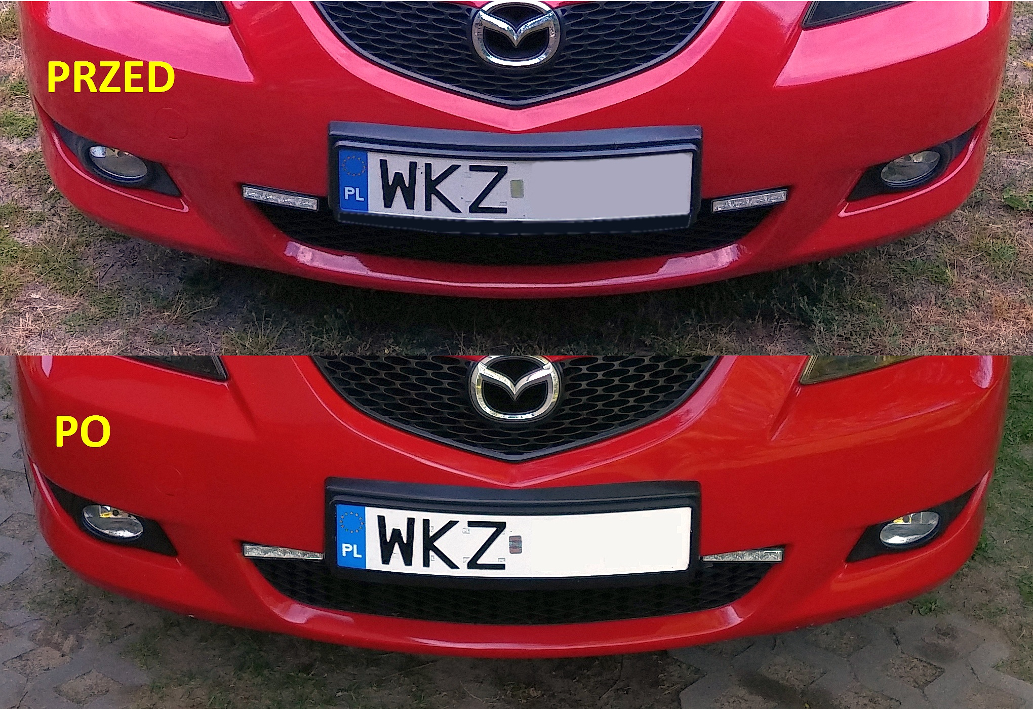 Znajomy zmotywował mnie do przeróbki mocowania świateł do jazdy dziennej, gdy stwierdził, że "prawe światło Ci się przepaliło". Fakt, tak to wyglądało, bo światła były zamontowane równo z obrysem zderzaka i nie świeciły dokładnie prosto. Teraz obydwa świecą idealnie <spoko>