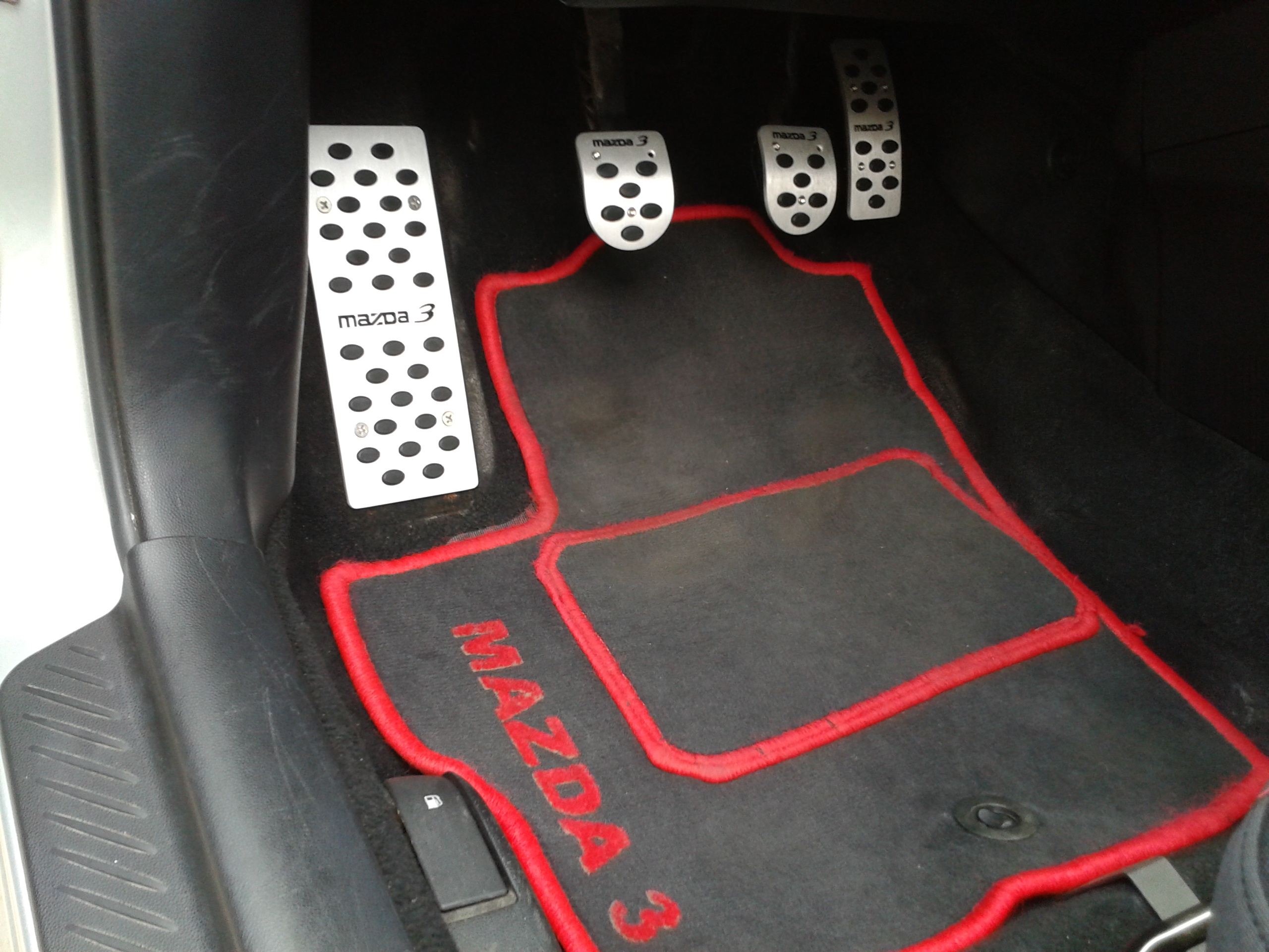 Niestety wbrew zapewnieniom sprzedawcy na allegro nakładki nie pasują do wszystkich BK, podejrzewam, że do BL też nie. Jeśli chodzi o wersje z Y6 otwory nie pasują. Da się nawiercić 2/3 otworów na sprzęgle i hamulcu. Ale nakładki dobrze trzymają, więc zamontowałem i ma służyć. Co do wykonania wydaje się dość dobre, gruba guma. Napis MAZDA 3 jest wycięty w metalu i pociągnięty czymś czarnym (to nie guma). Jak będzie z trwałością zobaczymy.