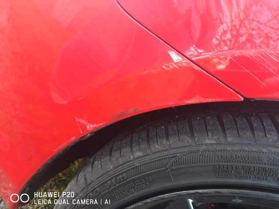 Malowane było – felga, błotnik i zderzak – tak na szczęście cały zderzak polakierowali, był on cały w odpryskach i zadrapaniach od krawężników
