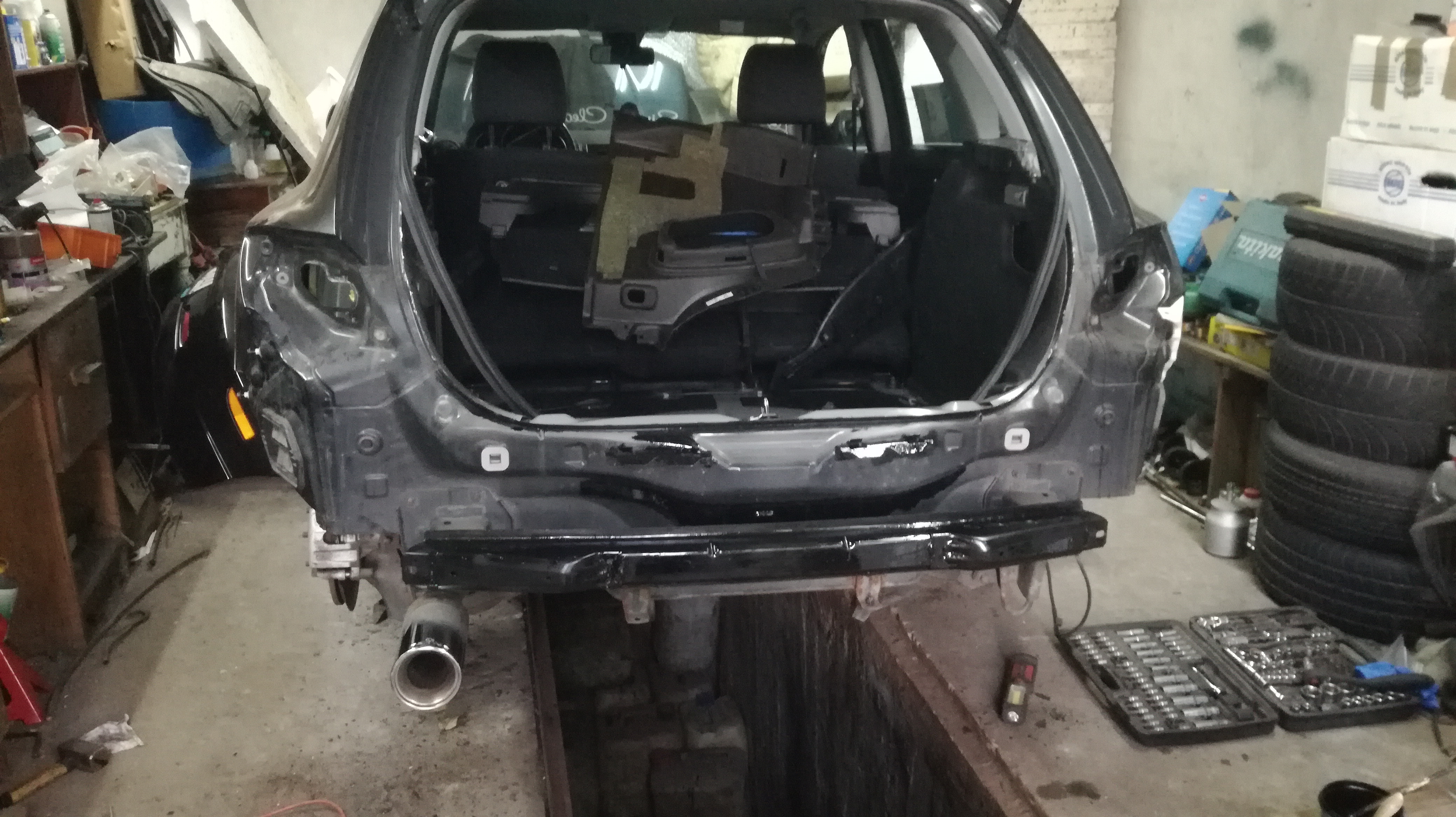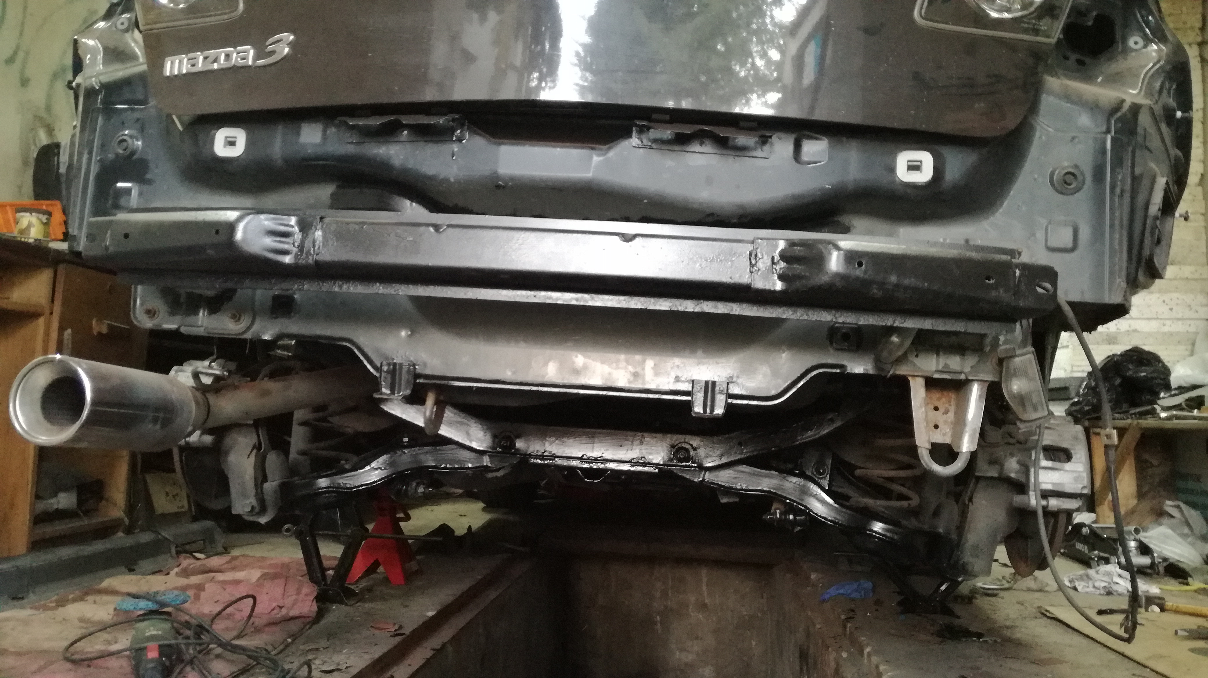 w czwartek Mazda w końcu wyjechała od DR2K z garażu <jupi> jeszcze nie jest wyczyszczona, ciągle śmierdzi farbą, ale już w swoim garażu <serduszka> dobra, to w skrócie zakres prac antykorozyjnych :P więc najpierw rozbieranie, później dłubanie pod antykorozją i voila