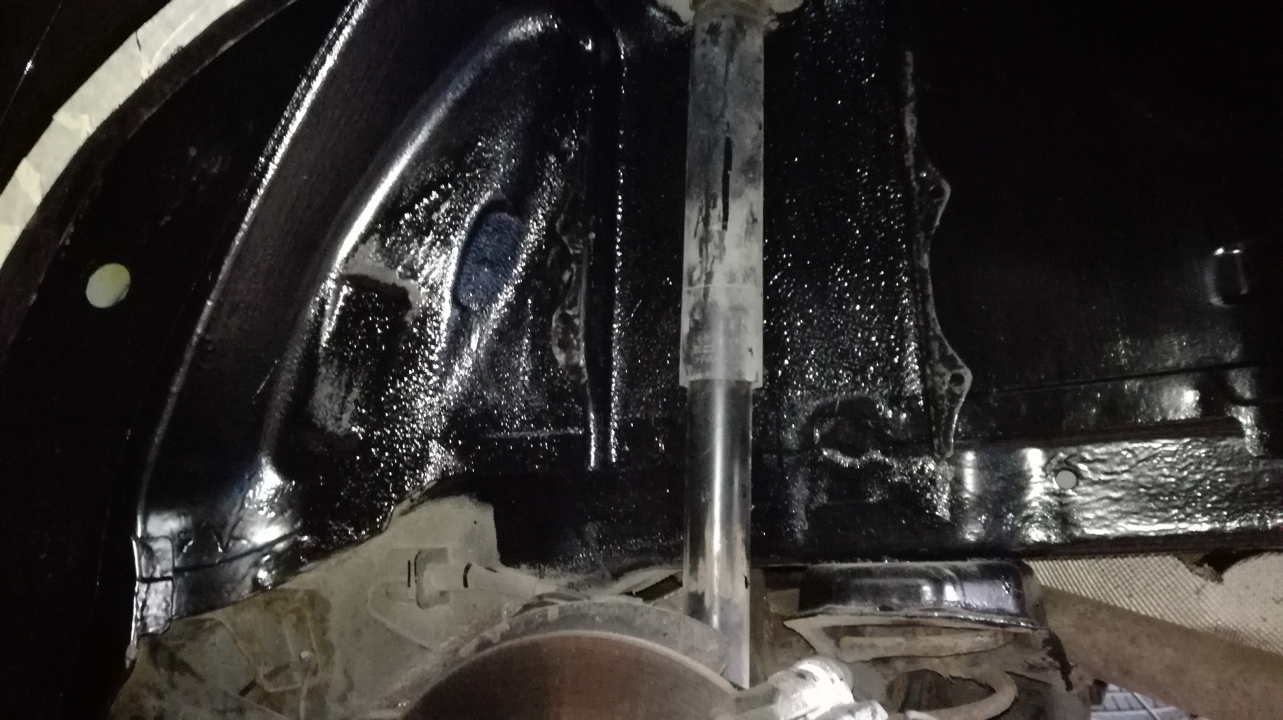 Farba została również wstrzyknięta (z pomocą kompresora) do wnętrz progów i do nadkoli tylnych. Ilość, którą zużyliśmy wystarczyłaby do pomalowania czołgu hahaha