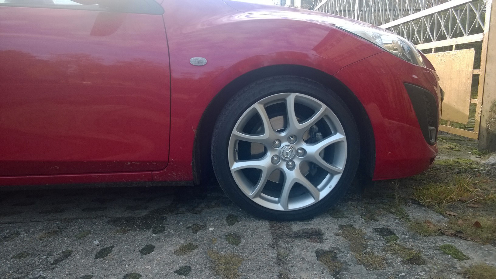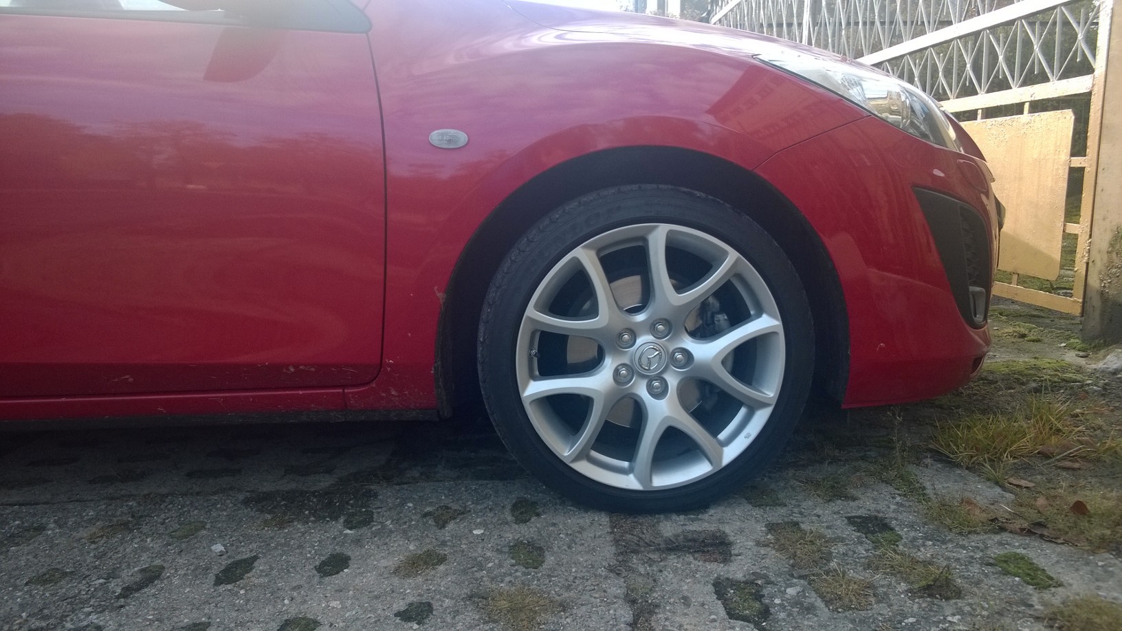 Dziś pojechałem na wyczekaną wymianę kół na te z MPSa. Facet powiedział, że on by nie zakładał tych opon (ori Dunlopy, data produkcji 2210). Problem jest taki, że są popękane wzdłuż w rowkach bieżnika. Miałem nadzieję, że jeszcze rok pojeżdżę na nich (bieżnik spokojnie by na to pozwolił) ale niestety trzeba kupić nowe.