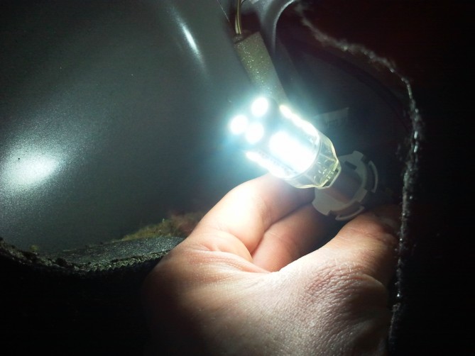 Sam się zastanawiałem nad zamontowaniem ledowej żarówki pod wsteczny, ale wydaje mi się, że nie da więcej światła niż zwykła.