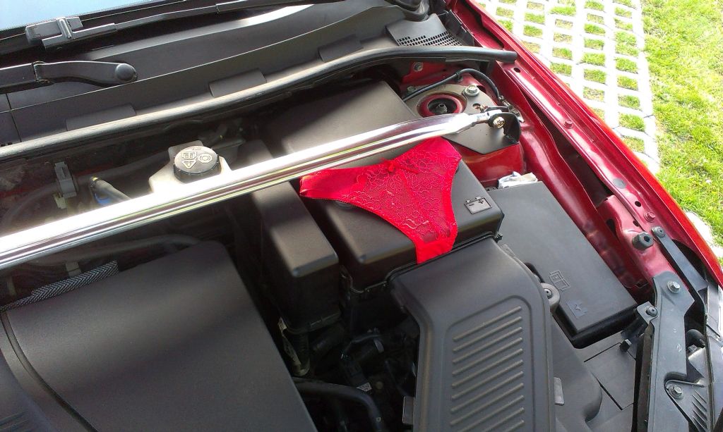 Mało czasu mam na auto, ale ściągnąłem kolejny dodatek ze starego auta.. każdemu pojawiał się banan na twarzy jak to widział.. Mianowicie stringi w ostrym czerwonym kolorze na obudowie akumulatora