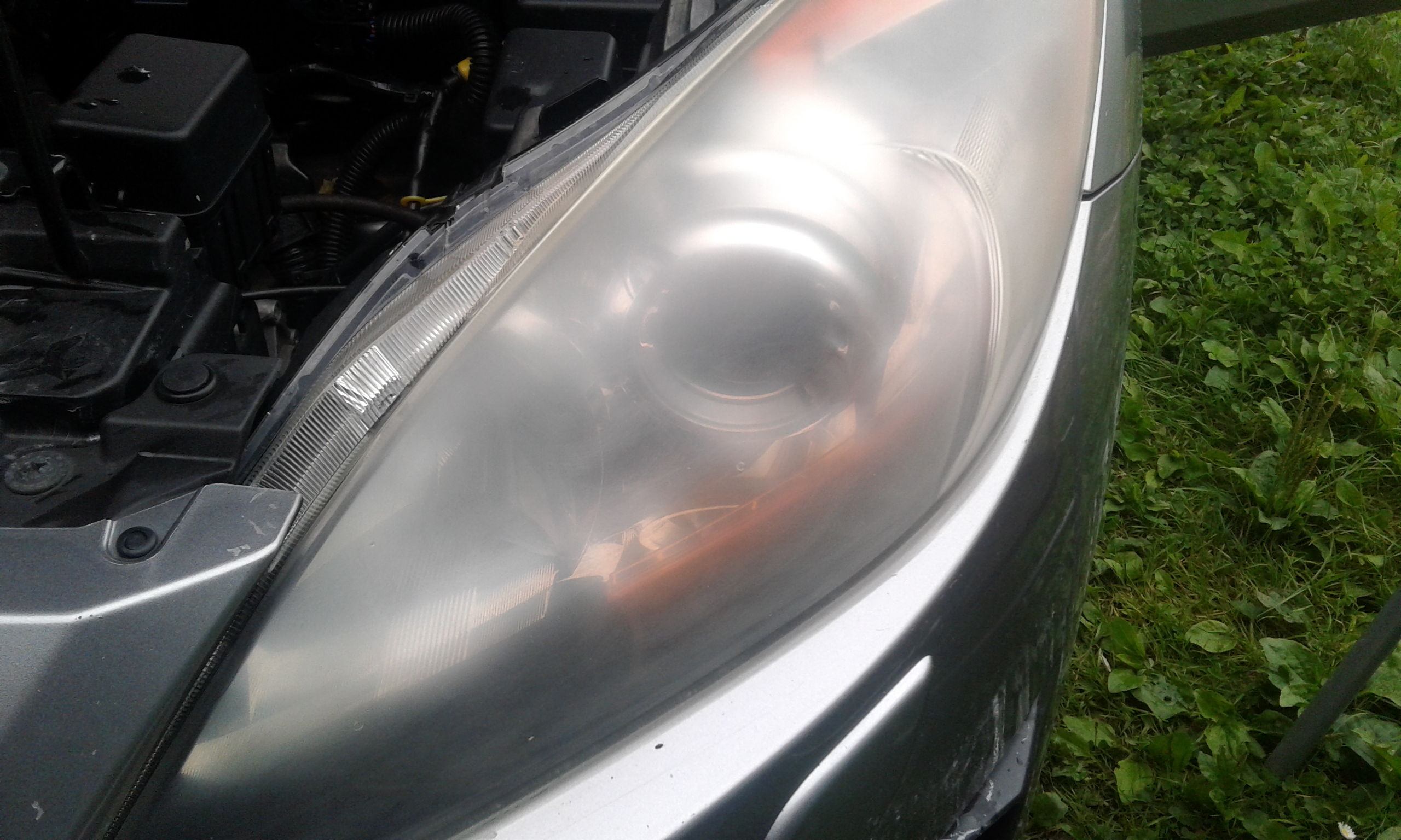 Natomiast przedwczoraj przeprowadziłem regenerację reflektorów, ponieważ lewy przedni był już w stanie 2/5 (w miejscu przed soczewką "mleczne" plamy, ogólnie cały zmatowiały, prawy nieco lepszy jakieś +3/5.