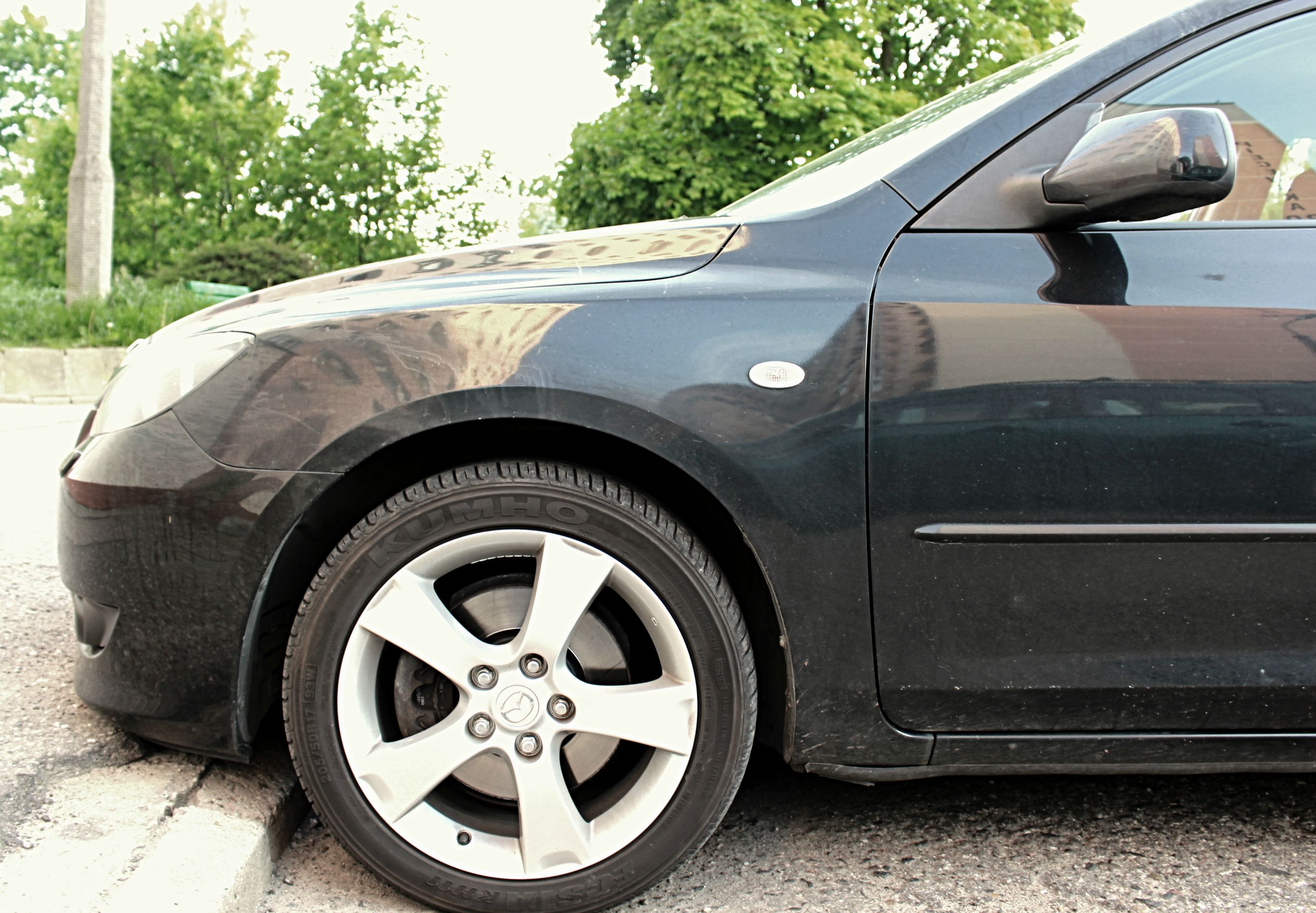 Po zimie nowe opony, Dunlop SP Sport Bluresponse 205/50R17 89 V, na razie 500km zrobiłem, jest ciszej niż ze starymi zjechanymi gumami, ogólnie spoko, mam nadzieje, że długo będą służyć. Przedemną porządne mycie i glinkowanie oraz akcja woskowanie :) Niestety po zimie, mimo, że śnieżnego szału nie było, na nadkole które było niby zabezpieczone, wróciła ruda, normalnie ten samochód jest biodegradowalny <nie>