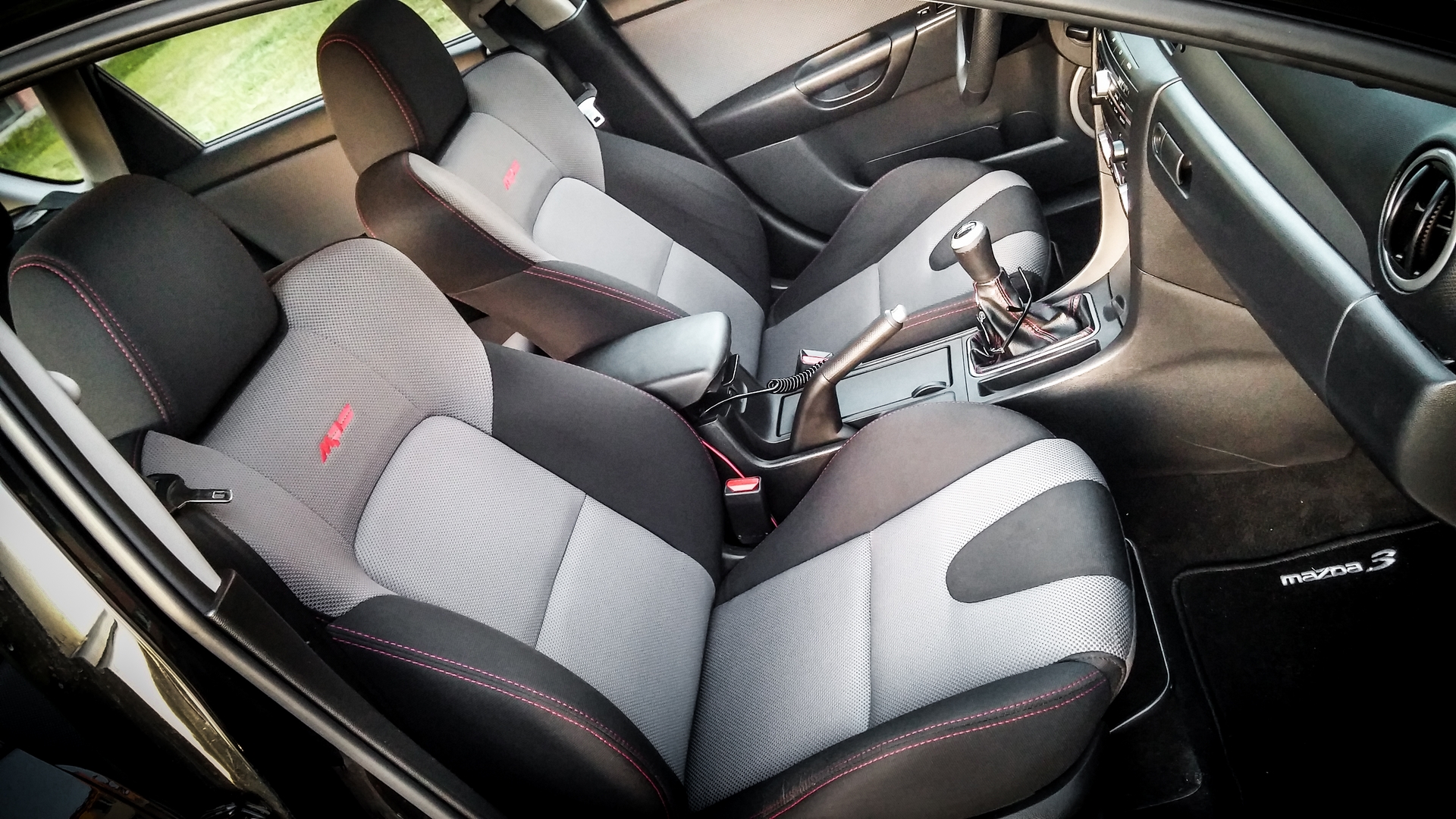 Wymienione zostały również dywaniki z gumowych ori Mazdy na welurowe ori Mazda. Niestety nie specjalnie chciało mi się dopłacać za sam znaczek "MPS" prawie 140 zł, dlatego zdecydowałem się na standardowe z logo MAZDY 3.