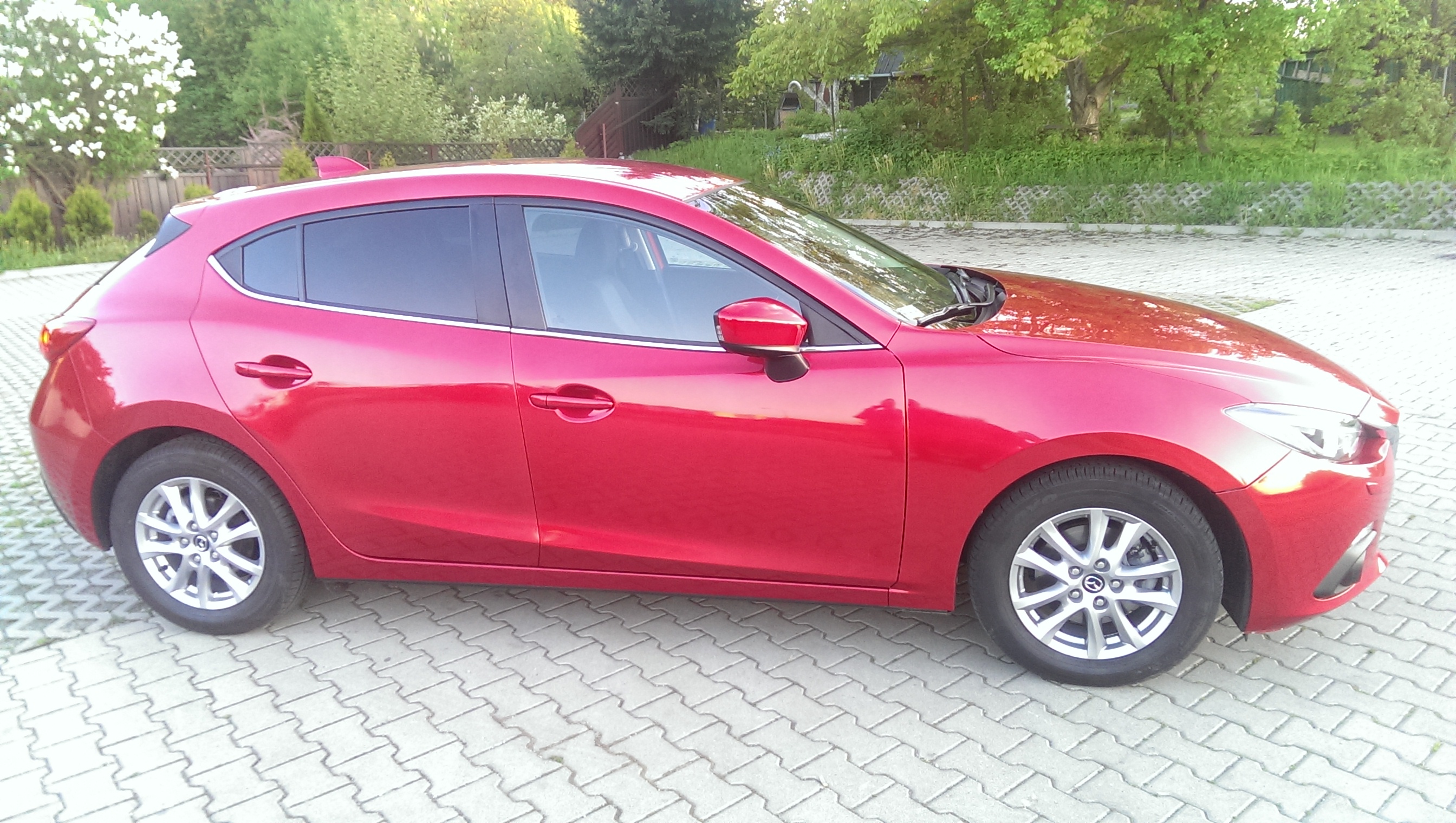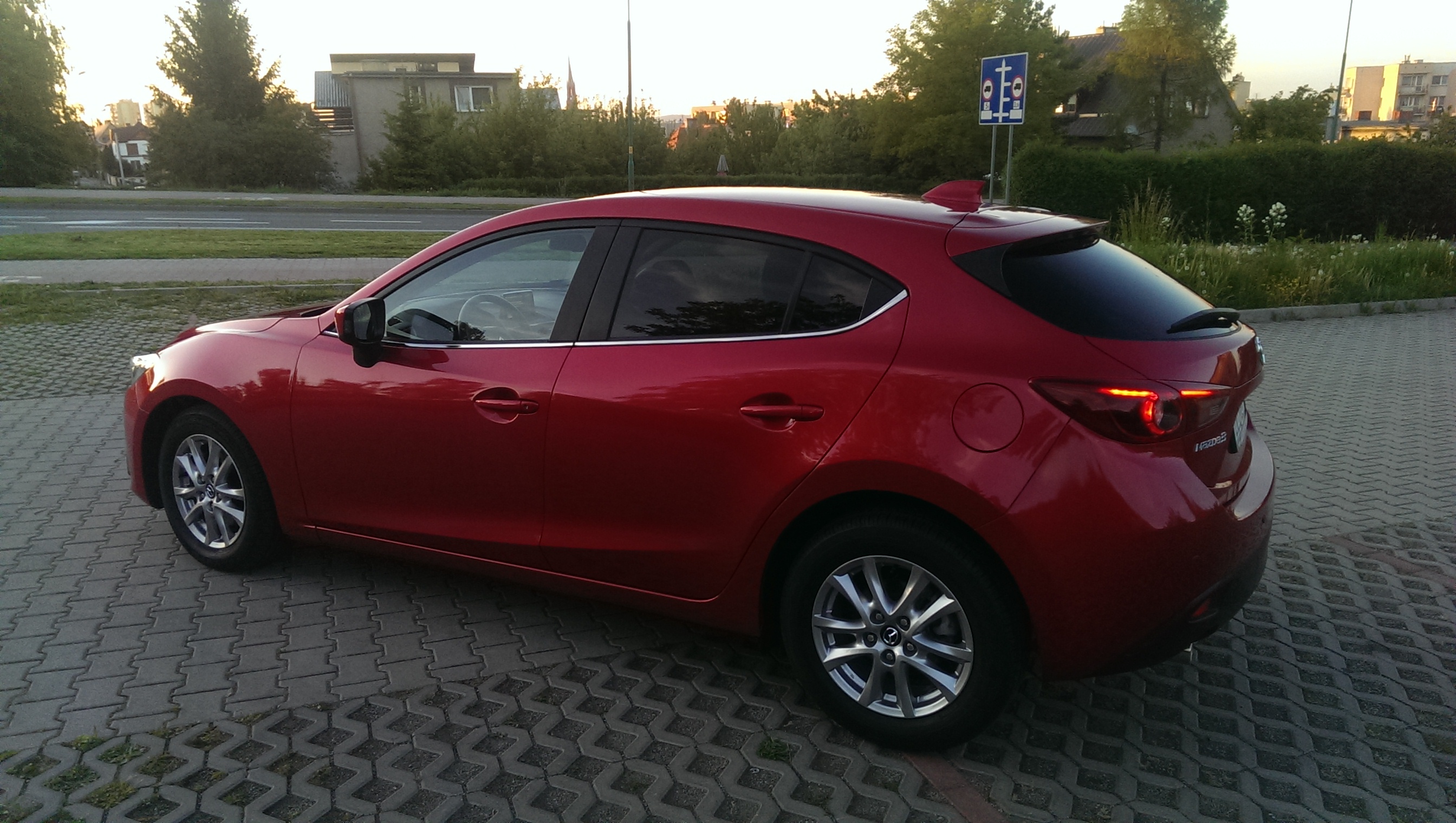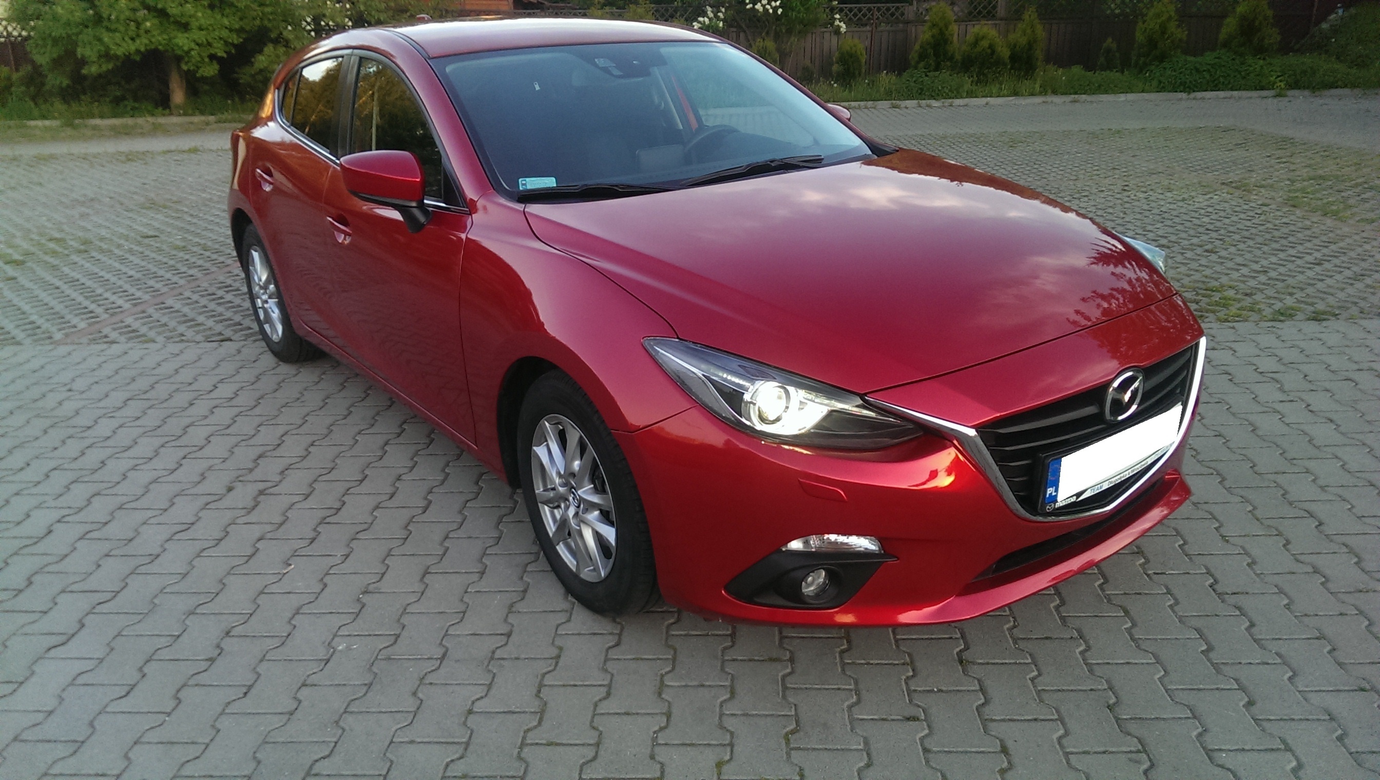 29.04.2015 stałem się szczęśliwym posiadaczem kolejnej Mazdy 3(wcześniej był to 2010 r 1.6 D), tym razem jest to nowy model z mało popularnym w Polsce silnikiem 2.2 SkyActiv-D o mocy 150KM z dwiema turbosprężarkami <diabełek> Auto zostało zakupione od salonu Mazdy w Niemczech, wcześniej jeździło dla nich jako wersja testowa.