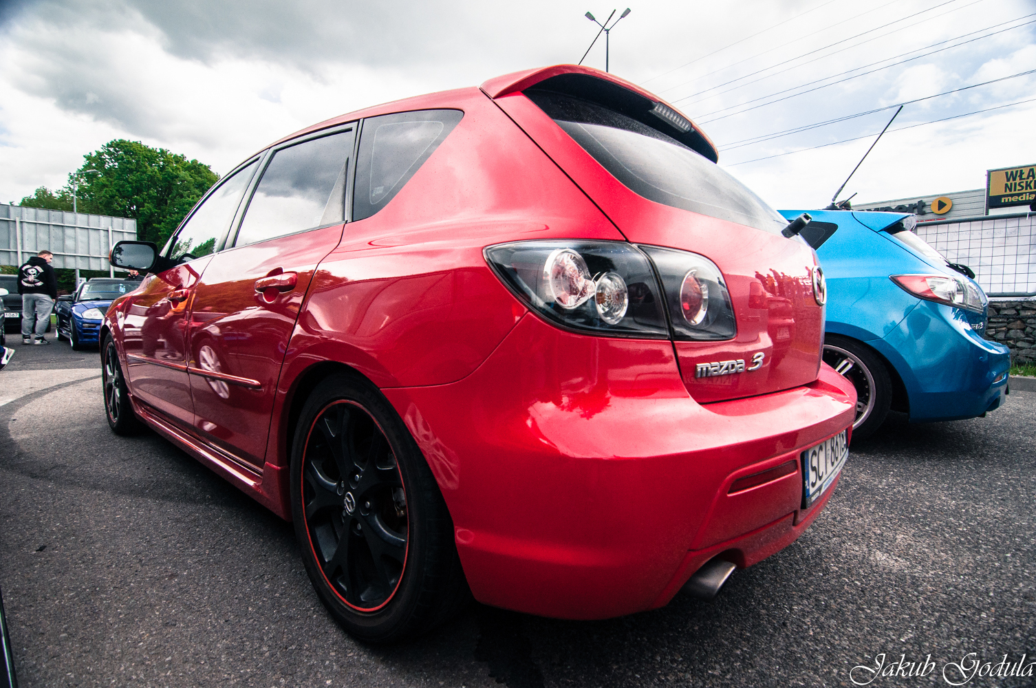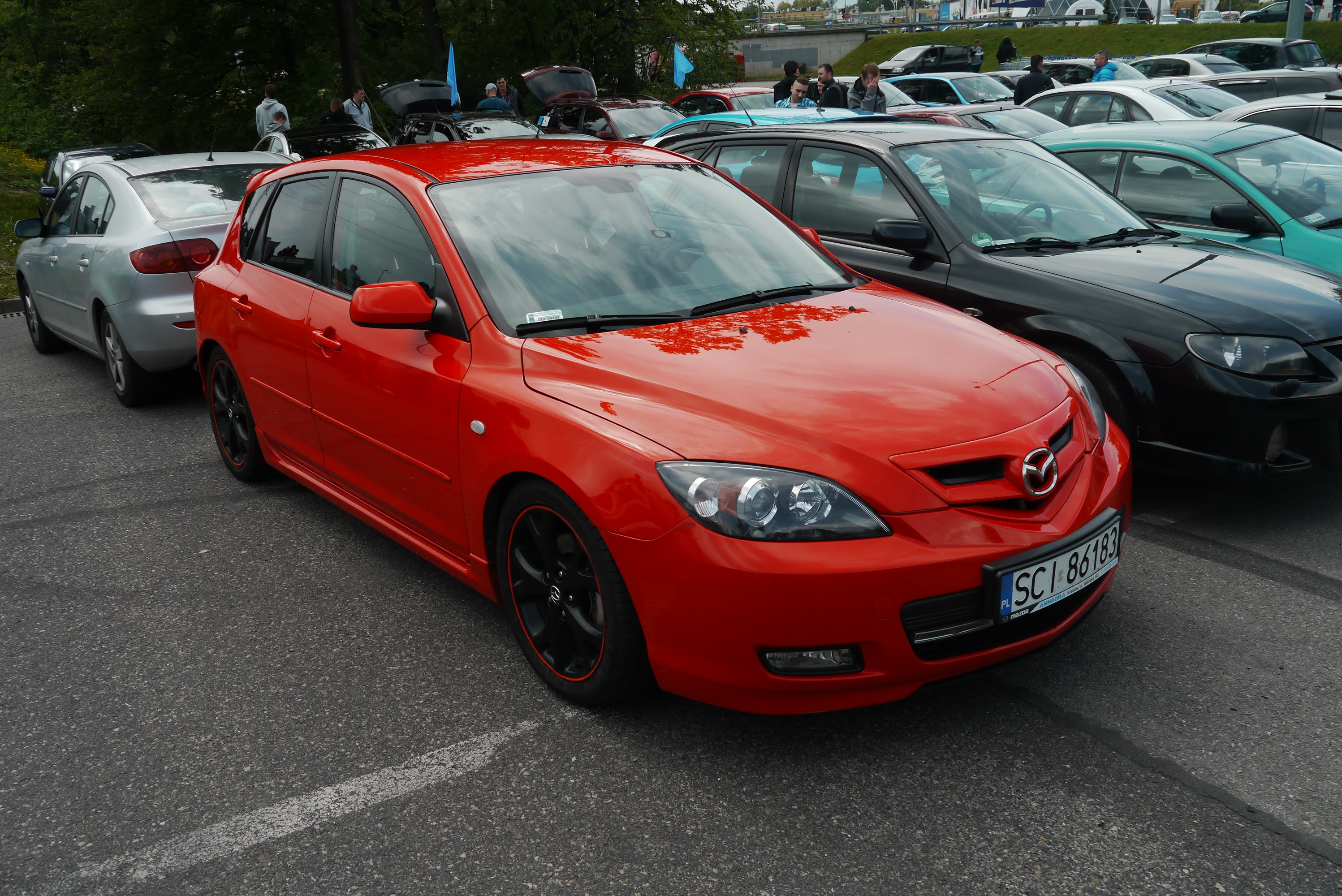 Świetna sztuka z ten Mazdy :) Kolor piekny. Czerwony rant na felgach robi robotę :D powodzonka w modach i przyjemności z jazdy